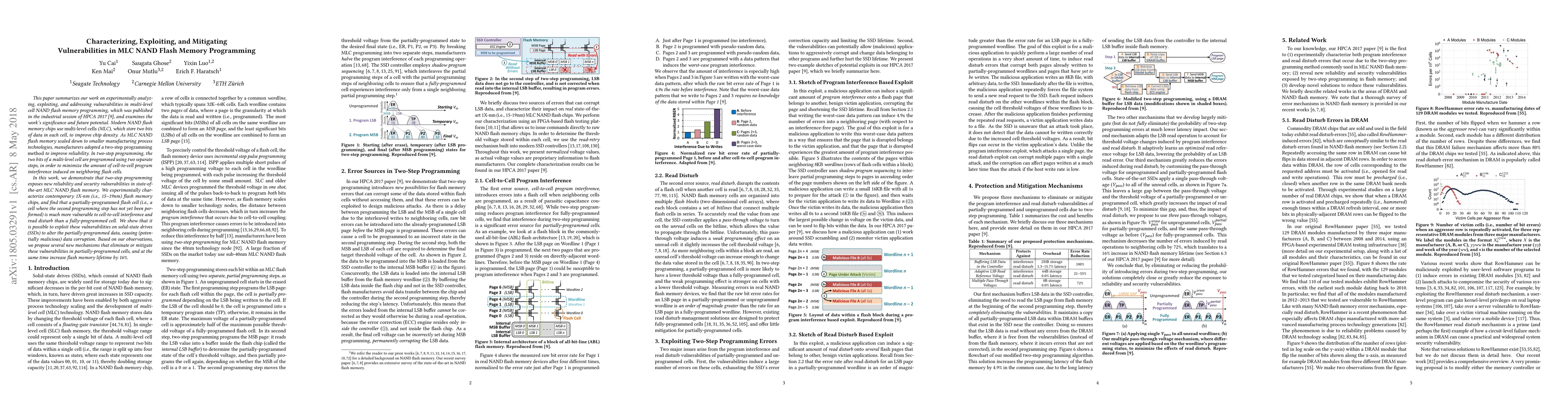 This paper summarizes our work on experimentally analyzing, exploiting, and addressing vulnerabilities in multi-level cell NAND flash memory programming, which was published in the industrial session of HPCA 2017, and examines the work's significance and future potential. Modern NAND flash memory chips use multi-level cells (MLC), which store two bits of data in each cell, to improve chip density. As MLC NAND flash memory scaled down to smaller manufacturing process technologies, manufacturers adopted a two-step programming method to improve reliability. In two-step programming, the two bits of a multi-level cell are programmed using two separate steps, in order to minimize the amount of cell-to-cell program interference induced on neighboring flash cells. In this work, we demonstrate that two-step programming exposes new reliability and security vulnerabilities in state-of-the-art MLC NAND flash memory. We experimentally characterize contemporary 1X-nm (i.e., 15--19nm) flash memory chips, and find that a partially-programmed flash cell (i.e., a cell where the second programming step has not yet been performed) is much more vulnerable to cell-to-cell interference and read disturb than a fully-programmed cell. We show that it is possible to exploit these vulnerabilities on solid-state drives (SSDs) to alter the partially-programmed data, causing (potentially malicious) data corruption. Based on our observations, we propose several new mechanisms that eliminate or mitigate these vulnerabilities in partially-programmed cells, and at the same time increase flash memory lifetime by 16%.