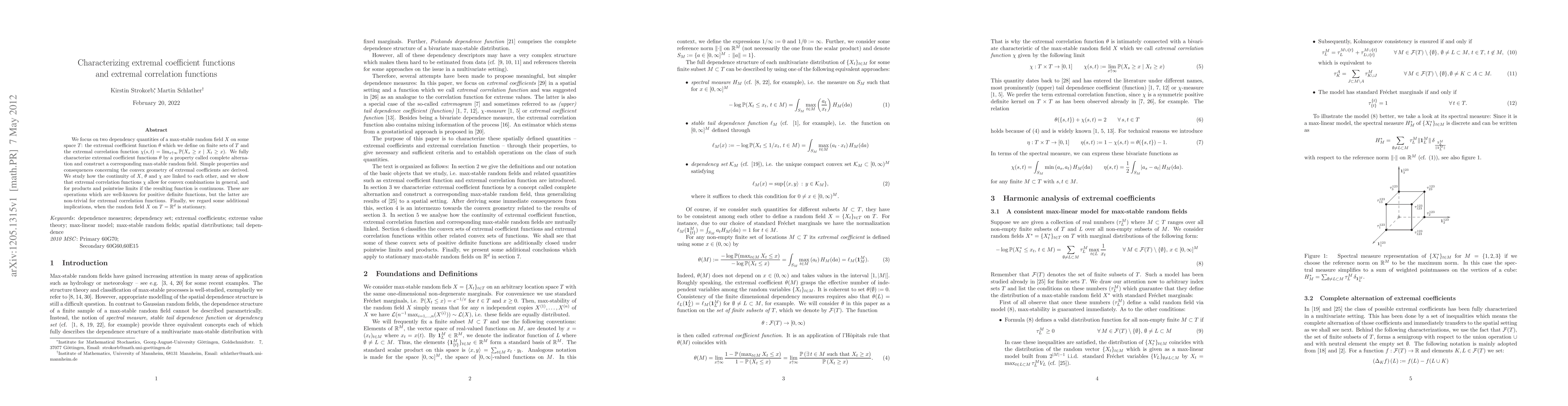 This paper characterizes extremal coefficient functions $\theta$ and extremal correlation functions $\chi$ for a max-stable random field $X$. It shows how continuity properties of $X$, $\theta$, and $\chi$ are interconnected and establishes that $\chi$ allows for convex combinations, products, and pointwise limits under certain conditions.