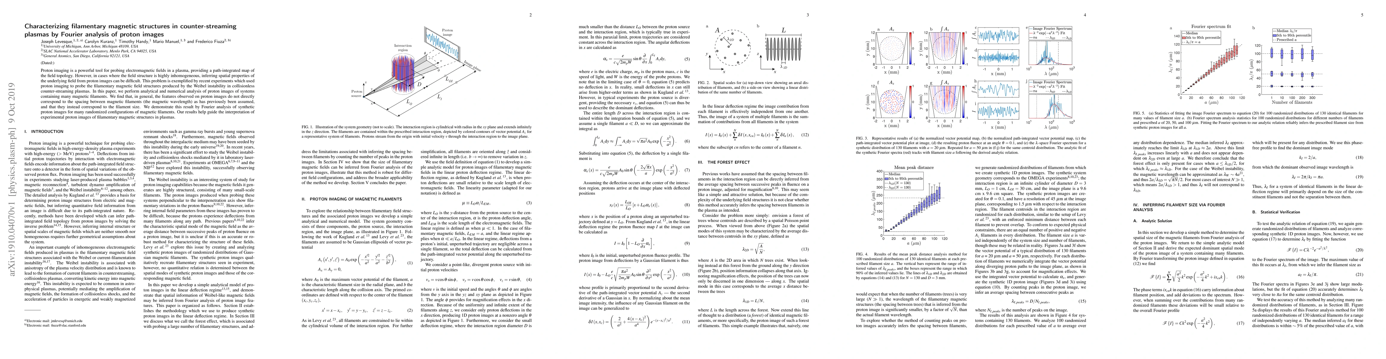 This paper uses Fourier analysis of proton images to reveal that observed features do not correspond to magnetic filament spacing but rather to filament size, challenging previous assumptions and aiding the interpretation of experimental data on filamentary magnetic structures in counter-streaming plasmas.