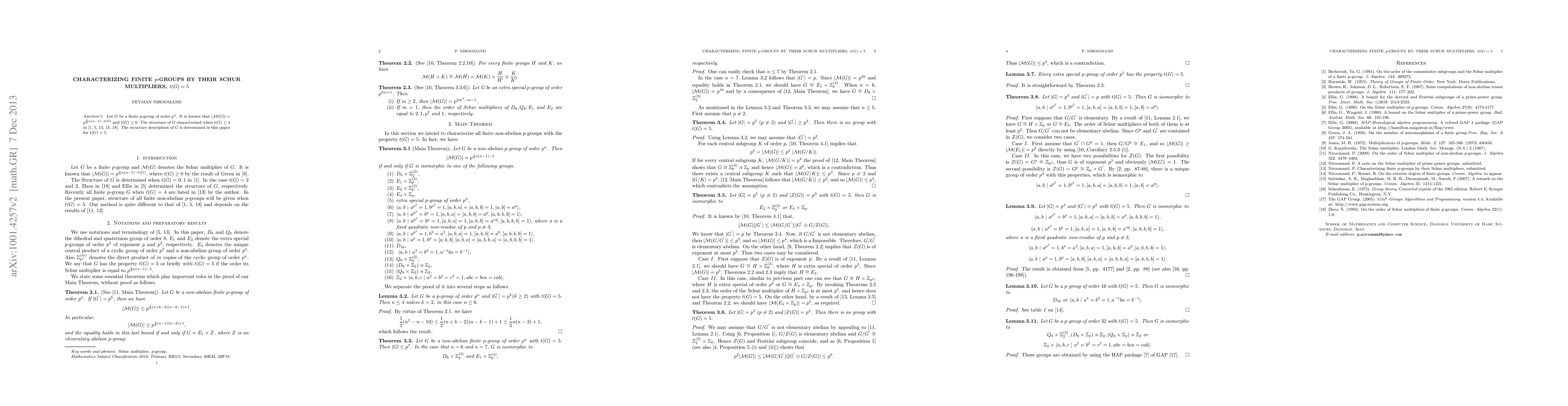 Let $G$ be a finite $p$-group of order $p^n$. It is known that $|\mathcal{M}(G)|=p^{\f{1}{2}n(n-1)-t(G)}$ and $t(G)\geq 0$. The structure of $G$ characterized when $t(G)\leq 4$ in \cite{be,el,ni,sa,zh}. The structure description of $G$ is determined in this paper for $t(G)=5$.