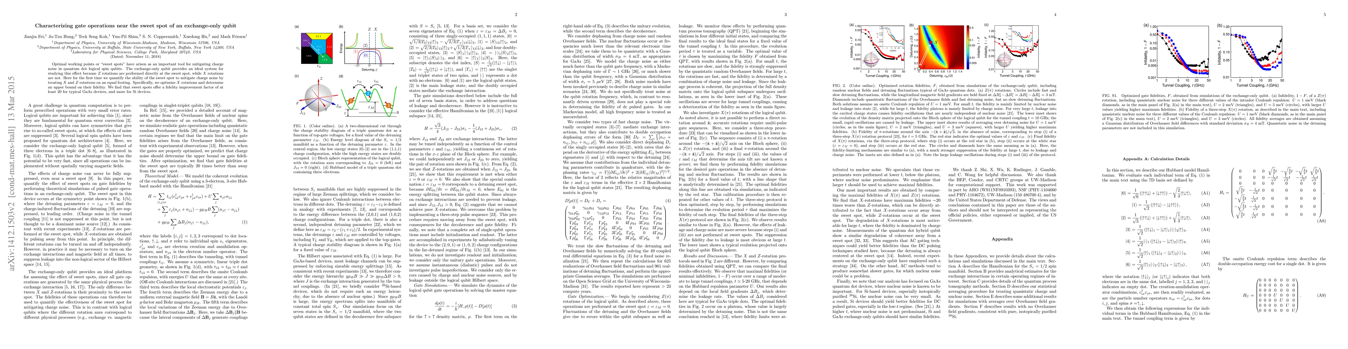 This paper investigates the effectiveness of "sweet spots" in mitigating charge noise for exchange-only qubits, optimizing $X$ rotations and determining their fidelity. The study finds that sweet spots provide a significant fidelity improvement factor, especially for GaAs and Si devices.