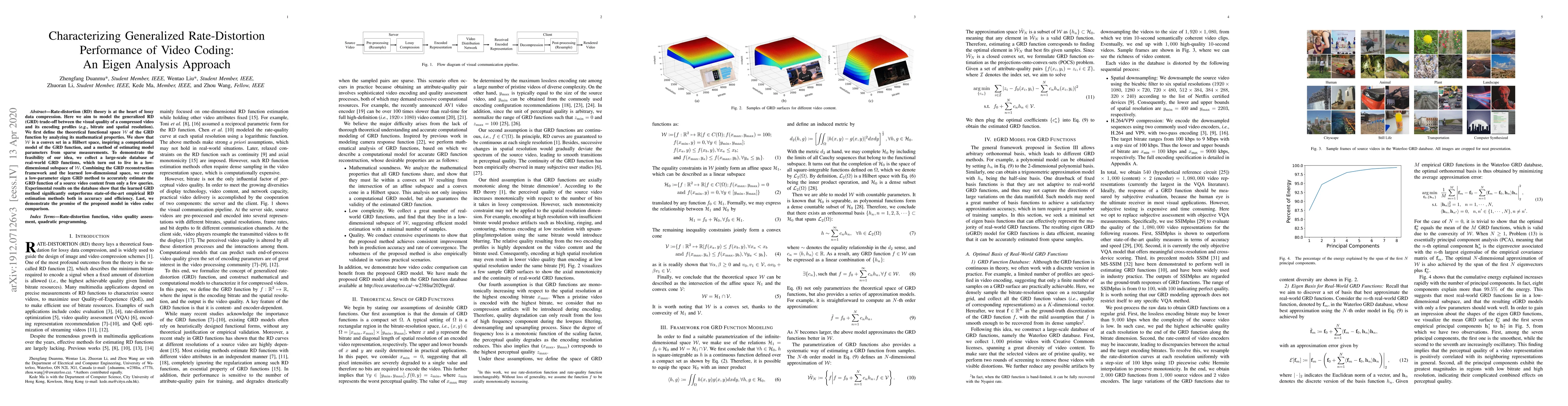 Rate-distortion (RD) theory is at the heart of lossy data compression. Here we aim to model the generalized RD (GRD) trade-off between the visual quality of a compressed video and its encoding profiles (e.g., bitrate and spatial resolution). We first define the theoretical functional space $\mathcal{W}$ of the GRD function by analyzing its mathematical properties.We show that $\mathcal{W}$ is a convex set in a Hilbert space, inspiring a computational model of the GRD function, and a method of estimating model parameters from sparse measurements. To demonstrate the feasibility of our idea, we collect a large-scale database of real-world GRD functions, which turn out to live in a low-dimensional subspace of $\mathcal{W}$. Combining the GRD reconstruction framework and the learned low-dimensional space, we create a low-parameter eigen GRD method to accurately estimate the GRD function of a source video content from only a few queries. Experimental results on the database show that the learned GRD method significantly outperforms state-of-the-art empirical RD estimation methods both in accuracy and efficiency. Last, we demonstrate the promise of the proposed model in video codec comparison.