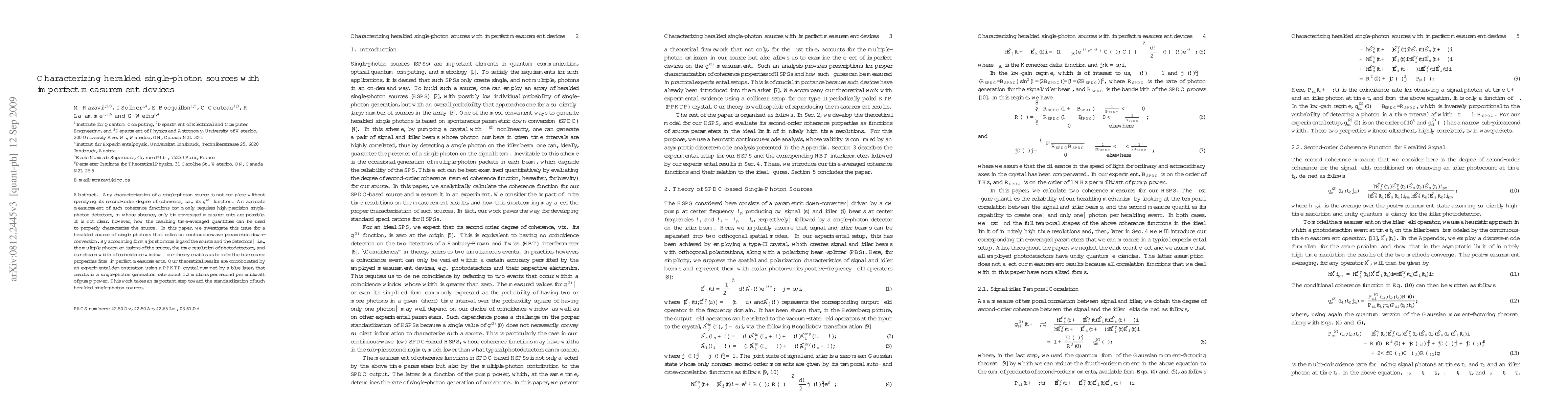 Any characterization of a single-photon source is not complete without specifying its second-order degree of coherence, i.e., its $g^{(2)}$ function. An accurate measurement of such coherence functions commonly requires high-precision single-photon detectors, in whose absence, only time-averaged measurements are possible. It is not clear, however, how the resulting time-averaged quantities can be used to properly characterize the source. In this paper, we investigate this issue for a heralded source of single photons that relies on continuous-wave parametric down-conversion. By accounting for major shortcomings of the source and the detectors--i.e., the multiple-photon emissions of the source, the time resolution of photodetectors, and our chosen width of coincidence window--our theory enables us to infer the true source properties from imperfect measurements. Our theoretical results are corroborated by an experimental demonstration using a PPKTP crystal pumped by a blue laser, that results in a single-photon generation rate about 1.2 millions per second per milliwatt of pump power. This work takes an important step toward the standardization of such heralded single-photon sources.
