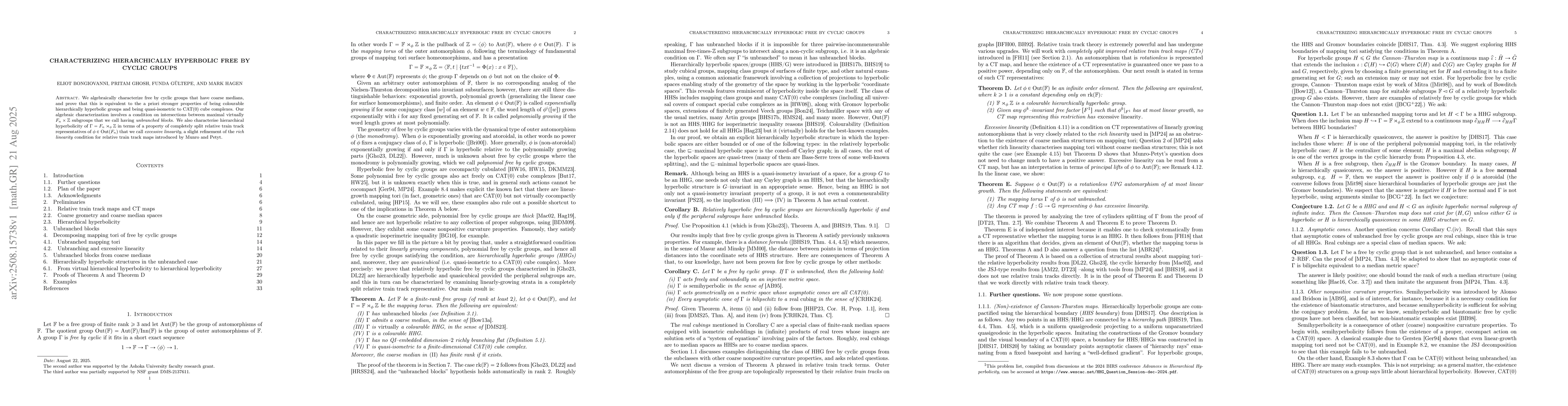We algebraically characterize free by cyclic groups that have coarse medians, and prove that this is equivalent to the a priori stronger properties of being colourable hierarchically hyperbolic groups and being quasi-isometric to CAT(0) cube complexes. Our algebraic characterization involves a condition on intersections between maximal virtually $F_n\times \mathbb Z$ subgroups that we call having \emph{unbranched blocks}. We also characterize hierarchical hyperbolicity of $\Gamma=F_n\rtimes_{\phi}\mathbb Z$ in terms of a property of completely split relative train track representatives of $\phi\in\mathrm{Out}(F_n)$ that we call \emph{excessive linearity}, a slight refinement of the \emph{rich linearity} condition for relative train track maps introduced by Munro and Petyt.