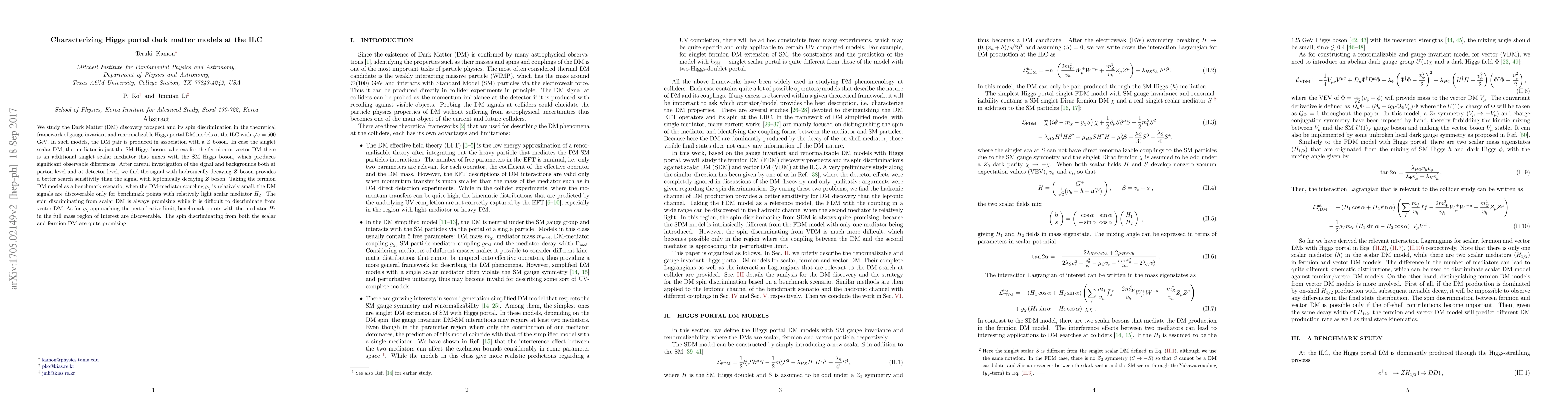 This paper investigates the prospects for discovering and discriminating between different types of Higgs portal dark matter (DM) models at the International Linear Collider (ILC) with a center-of-mass energy of 500 GeV. The study finds that signals with hadronically decaying Z bosons offer better sensitivity than those with leptonically decaying Z bosons, with promising prospects for spin discrimination in scalar DM models.