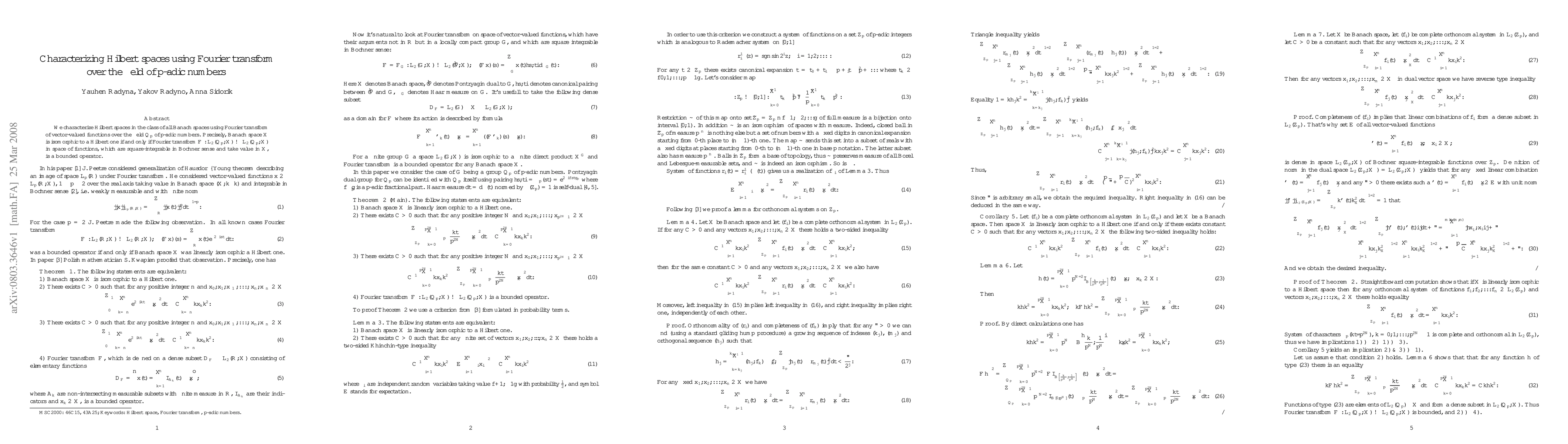 This paper characterizes Banach spaces isomorphic to Hilbert spaces using Fourier transforms over the field of $p$-adic numbers, proving that such a Banach space $X$ is isomorphic to a Hilbert space if and only if the Fourier transform operator $F$ on $L_2(Q_p,X)$ is bounded.