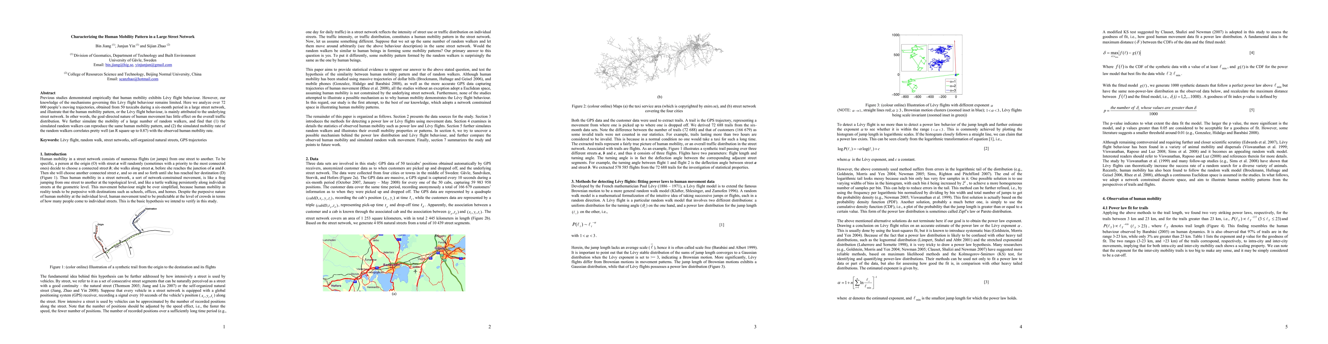 Previous studies demonstrated empirically that human mobility exhibits Levy flight behaviour. However, our knowledge of the mechanisms governing this Levy flight behaviour remains limited. Here we analyze over 72 000 people's moving trajectories, obtained from 50 taxicabs during a six-month period in a large street network, and illustrate that the human mobility pattern, or the Levy flight behaviour, is mainly attributed to the underlying street network. In other words, the goal-directed nature of human movement has little effect on the overall traffic distribution. We further simulate the mobility of a large number of random walkers, and find that (1) the simulated random walkers can reproduce the same human mobility pattern, and (2) the simulated mobility rate of the random walkers correlates pretty well (an R square up to 0.87) with the observed human mobility rate.
