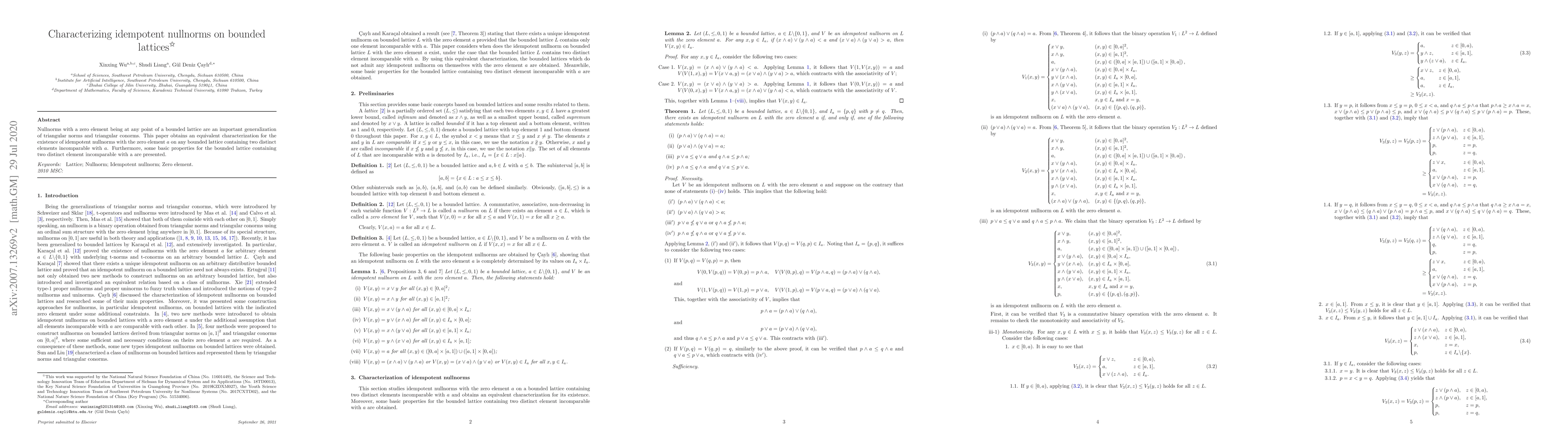 A novel characterization of idempotent nullnorms on bounded lattices was provided, which has implications for the development of new fuzzy set operations.