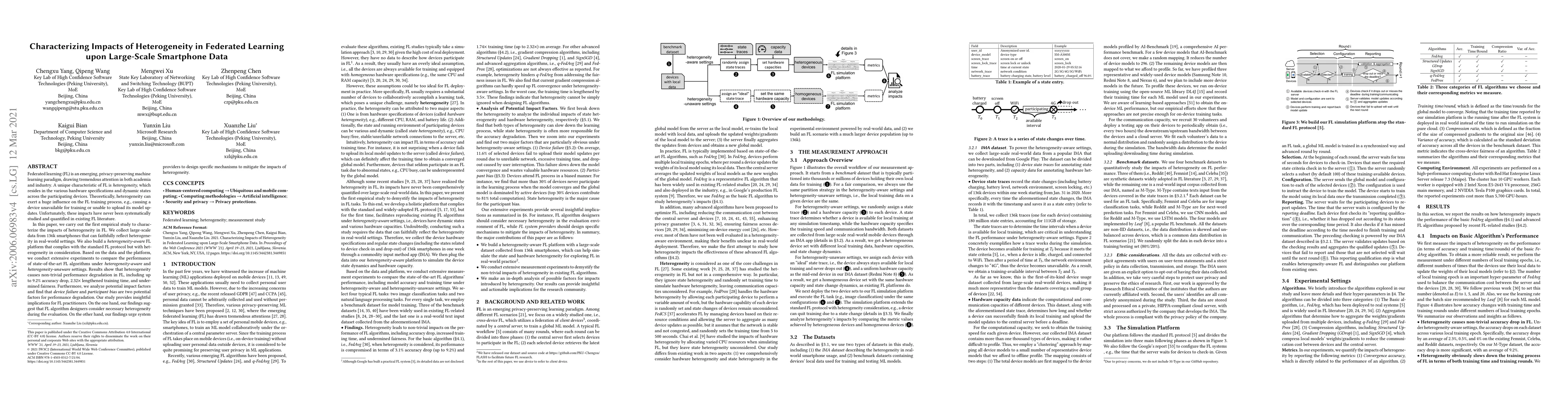 This paper conducts an empirical study to characterize the impacts of heterogeneity in federated learning (FL) using data from 136k smartphones. Results show significant performance degradation, including up to 9.2% accuracy drop and 2.32x longer training time, due to factors like device failure and participant bias, highlighting the need for heterogeneity-aware FL algorithms and mitigation strategies.