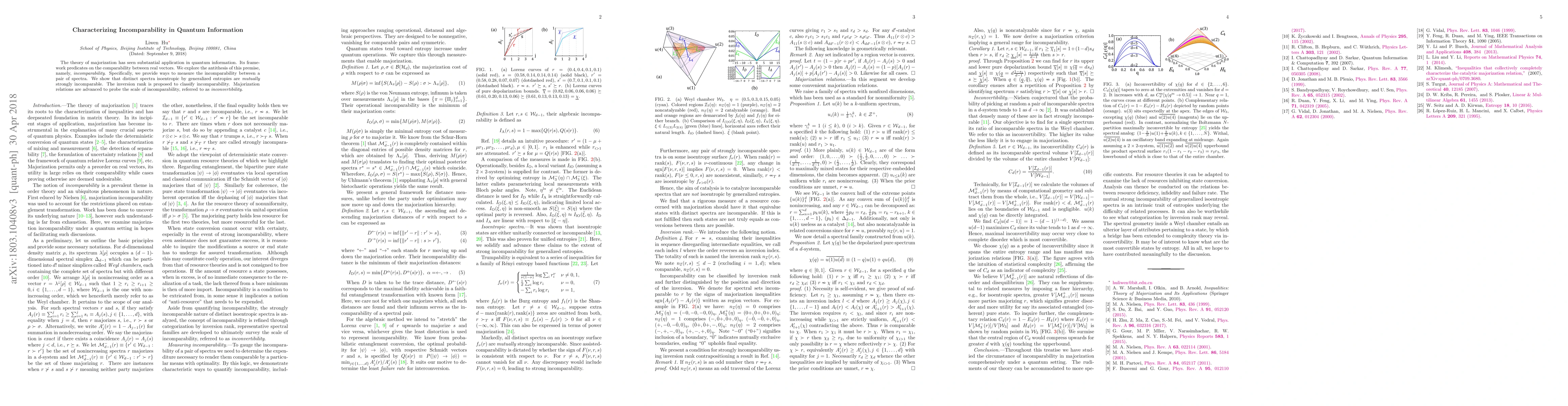 This research introduces the concept of incomparability in quantum information theory, contrasting the established majorization theory. It presents methods to quantify spectrum incomparability using inversion rank and inconvertibility, revealing that isoentropic spectra are strongly incomparable.