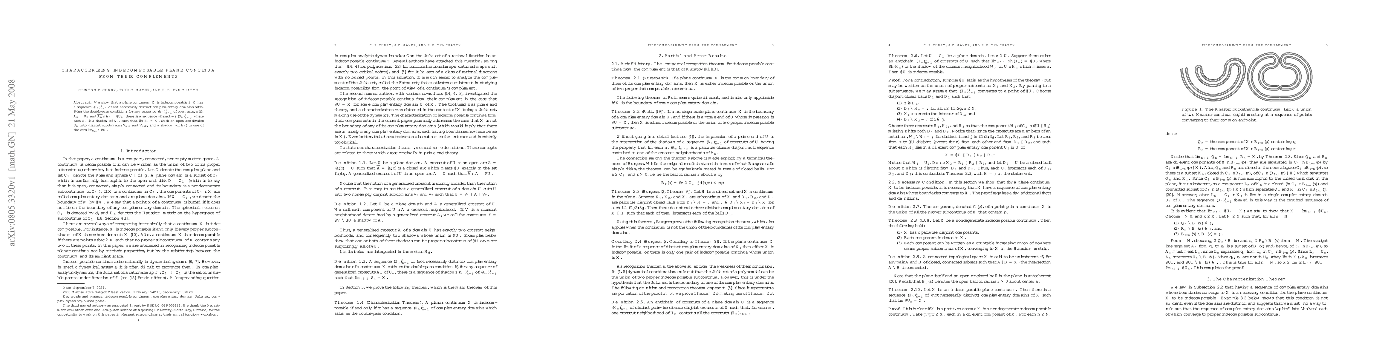 We show that a plane continuum X is indecomposable iff X has a sequence (U_n) of not necessarily distinct complementary domains satisfying what we call the double-pass condition: If one draws an open arc A_n in each U_n whose ends limit into the boundary of U_n, one can choose components of U_n minus A_n whose boundaries intersected with the continuum (which we call shadows) converge to the continuum.