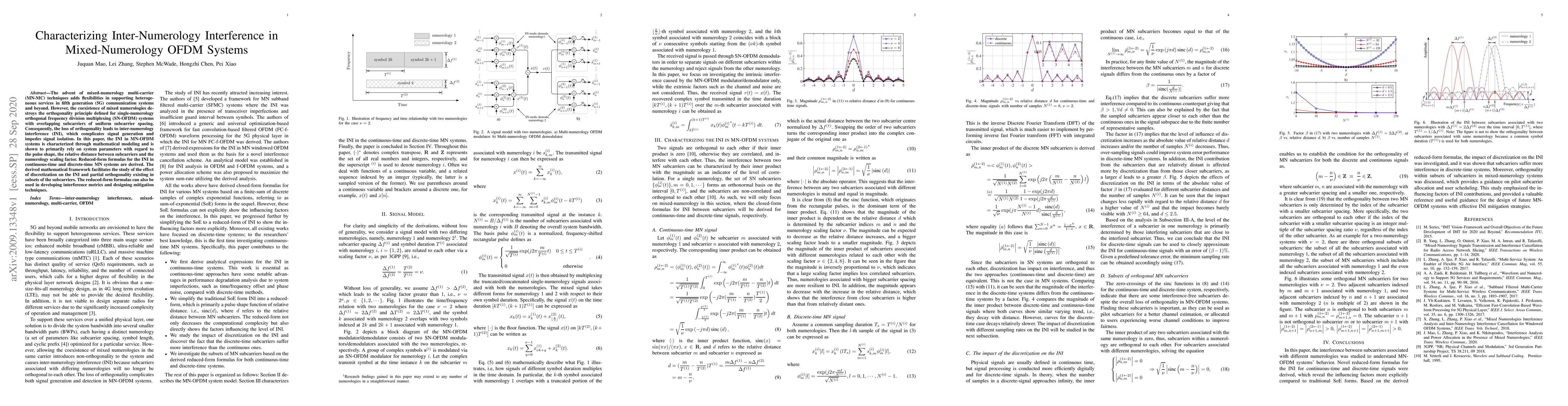 The advent of mixed-numerology multi-carrier (MN-MC) techniques adds flexibilities in supporting heterogeneous services in fifth generation (5G) communication systems and beyond. However, the coexistence of mixed numerologies destroys the orthogonality principle defined for single-numerology orthogonal frequency division multiplexing (SN-OFDM) systems with overlapping subcarriers of uniform subcarrier spacing. Consequently, the loss of orthogonality leads to inter-numerology interference (INI), which complicates signal generation and impedes signal isolation. In this paper, the INI in MN-OFDM systems is characterized through mathematical modeling and is shown to primarily rely on system parameters with regard to the pulse shape, the relative distance between subcarriers and the numerology scaling factor. Reduced-form formulas for the INI in continuous-time and discrete-time MN systems are derived. The derived mathematical framework facilitates the study of the effect of discretization on the INI and partial orthogonality existing in subsets of the subcarriers. The reduced-form formulas can also be used in developing interference metrics and designing mitigation techniques.