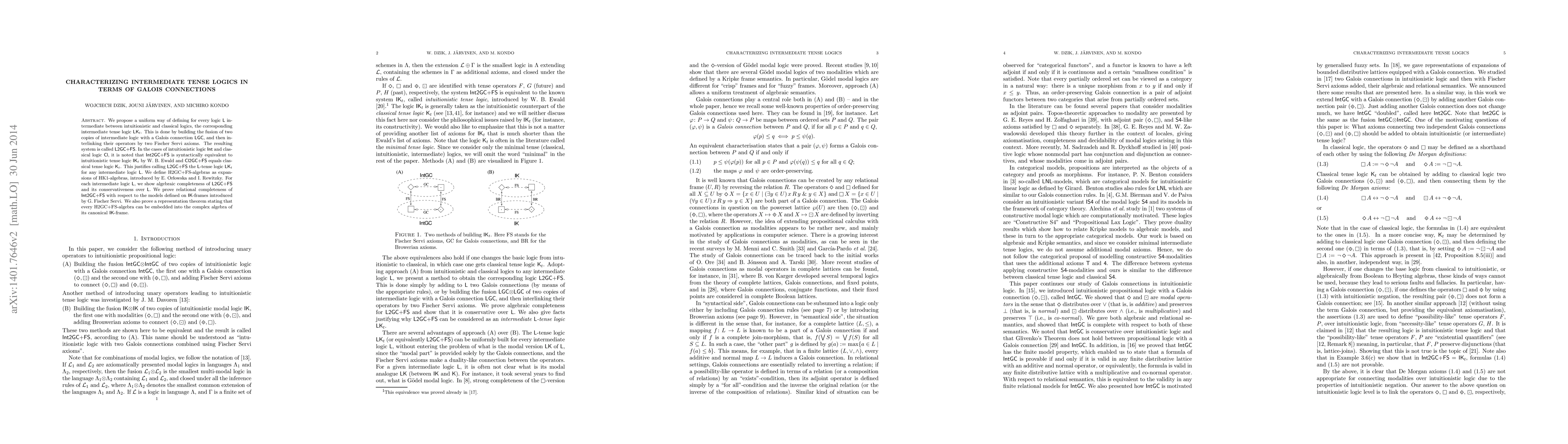 This paper proposes a method to define intermediate minimal tense logics ${\sf LK_t}$ by fusing intermediate logics with a Galois connection and Fischer Servi axioms, resulting in ${\sf L2GC{+}FS}$. It demonstrates algebraic and relational completeness for specific cases and proves that ${\sf H2GC+FS}$-algebras can be represented via ${\sf IK}$-frames.