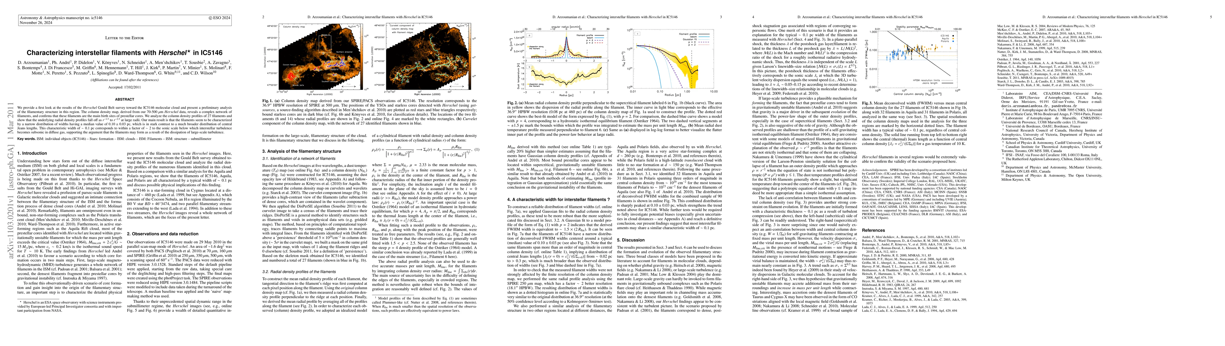 This study uses Herschel data to analyze the filamentary structure in the IC5146 molecular cloud, revealing a complex network of filaments that serve as primary sites for prestellar core formation. The filaments exhibit a narrow distribution of widths, suggesting they may form through the dissipation of large-scale turbulence.