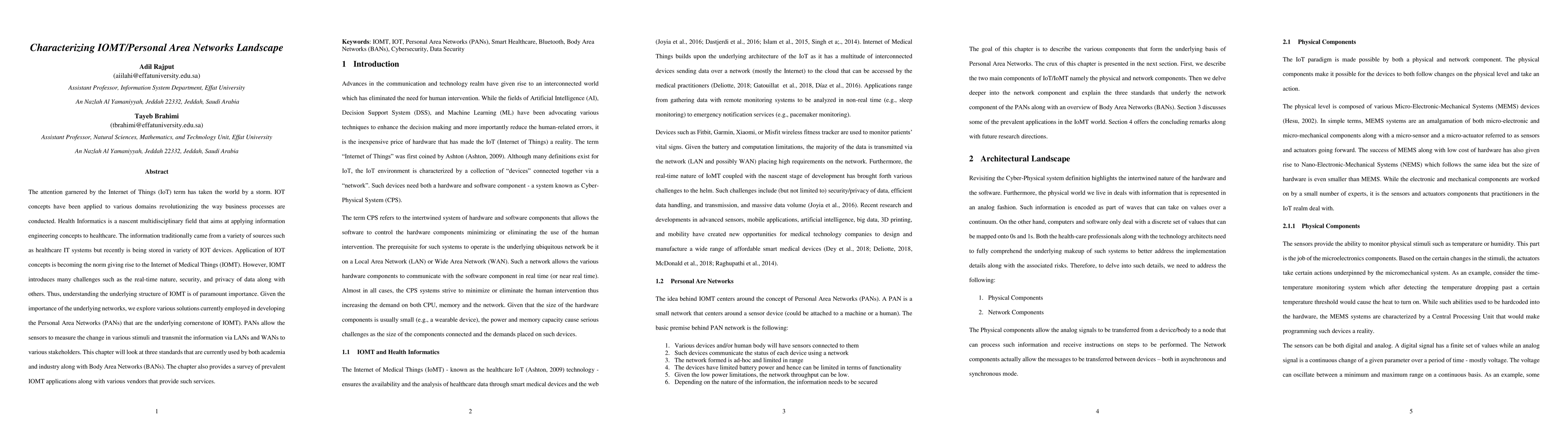 This paper explores the landscape of Internet of Medical Things (IOMT) and its underlying Personal Area Networks (PANs), focusing on the standards and technologies used to connect IoT devices in healthcare. It surveys prevalent IOMT applications, vendors, and the challenges associated with real-time data transmission, security, and privacy.