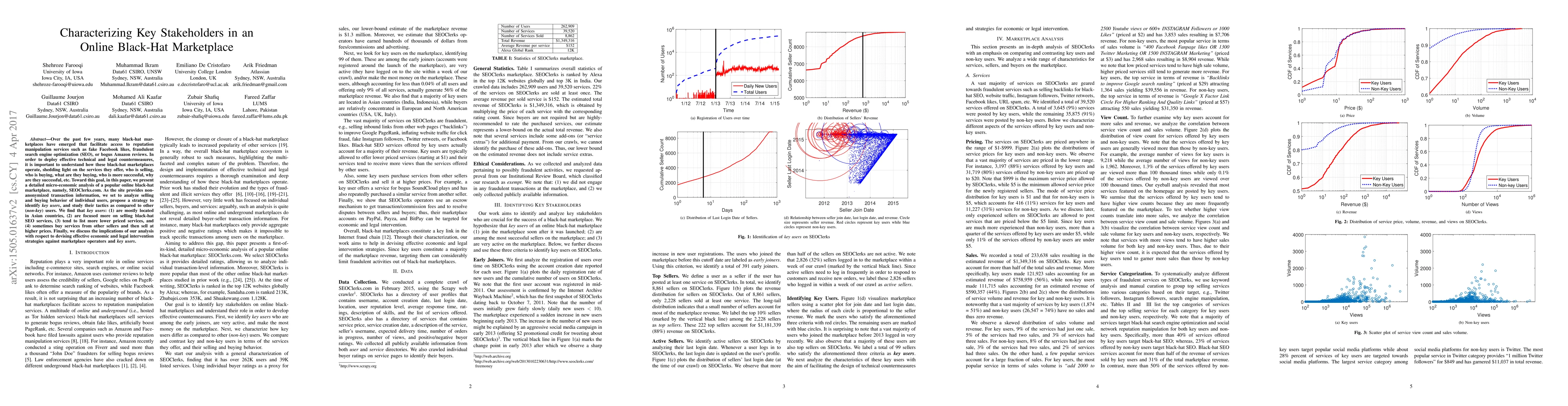Over the past few years, many black-hat marketplaces have emerged that facilitate access to reputation manipulation services such as fake Facebook likes, fraudulent search engine optimization (SEO), or bogus Amazon reviews. In order to deploy effective technical and legal countermeasures, it is important to understand how these black-hat marketplaces operate, shedding light on the services they offer, who is selling, who is buying, what are they buying, who is more successful, why are they successful, etc. Toward this goal, in this paper, we present a detailed micro-economic analysis of a popular online black-hat marketplace, namely, SEOClerks.com. As the site provides non-anonymized transaction information, we set to analyze selling and buying behavior of individual users, propose a strategy to identify key users, and study their tactics as compared to other (non-key) users. We find that key users: (1) are mostly located in Asian countries, (2) are focused more on selling black-hat SEO services, (3) tend to list more lower priced services, and (4) sometimes buy services from other sellers and then sell at higher prices. Finally, we discuss the implications of our analysis with respect to devising effective economic and legal intervention strategies against marketplace operators and key users.