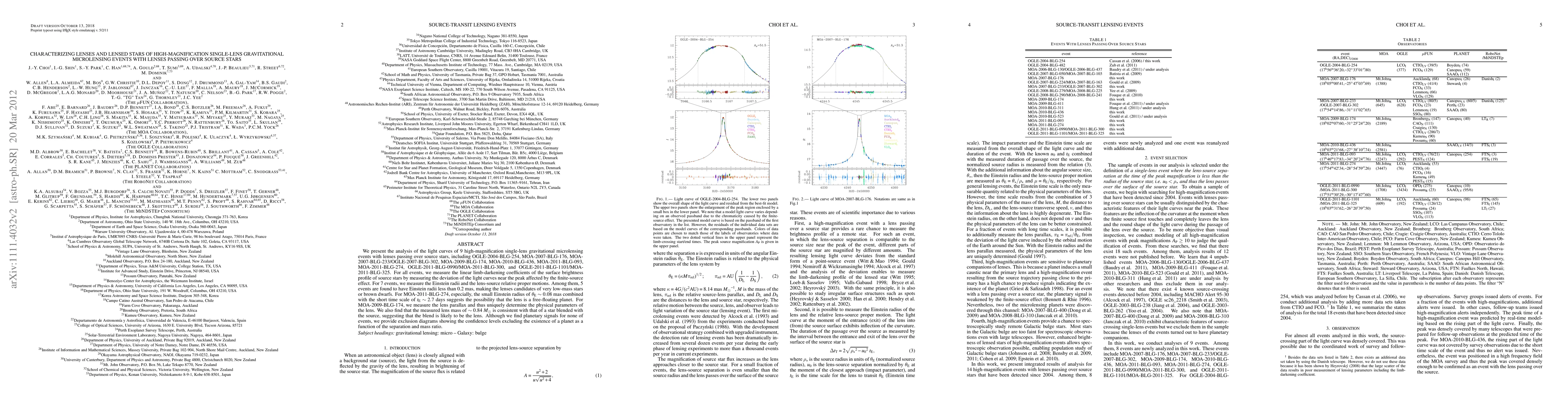 We present the analysis of the light curves of 9 high-magnification single-lens gravitational microlensing events with lenses passing over source stars, including OGLE-2004-BLG-254, MOA-2007-BLG-176, MOA-2007-BLG-233/OGLE-2007-BLG-302, MOA-2009-BLG-174, MOA-2010-BLG-436, MOA-2011-BLG-093, MOA-2011-BLG-274, OGLE-2011-BLG-0990/MOA-2011-BLG-300, and OGLE-2011-BLG-1101/MOA-2011-BLG-325. For all events, we measure the linear limb-darkening coefficients of the surface brightness profile of source stars by measuring the deviation of the light curves near the peak affected by the finite-source effect. For 7 events, we measure the Einstein radii and the lens-source relative proper motions. Among them, 5 events are found to have Einstein radii less than 0.2 mas, making the lenses candidates of very low-mass stars or brown dwarfs. For MOA-2011-BLG-274, especially, the small Einstein radius of $\theta_{\rm E}\sim 0.08$ mas combined with the short time scale of $t_{\rm E}\sim 2.7$ days suggests the possibility that the lens is a free-floating planet. For MOA-2009-BLG-174, we measure the lens parallax and thus uniquely determine the physical parameters of the lens. We also find that the measured lens mass of $\sim 0.84\ M_\odot$ is consistent with that of a star blended with the source, suggesting that the blend is likely to be the lens. Although we find planetary signals for none of events, we provide exclusion diagrams showing the confidence levels excluding the existence of a planet as a function of the separation and mass ratio.