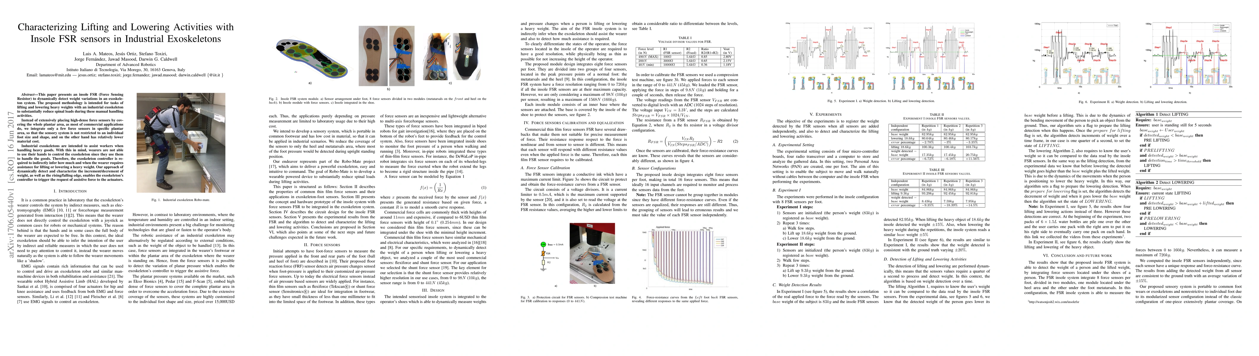 This paper proposes using insole FSR sensors to dynamically detect weight variations in industrial exoskeletons, aiming to reduce spinal loads during lifting and lowering activities. The approach focuses on integrating a few force sensors in specific plantar areas, minimizing material costs and avoiding size restrictions.