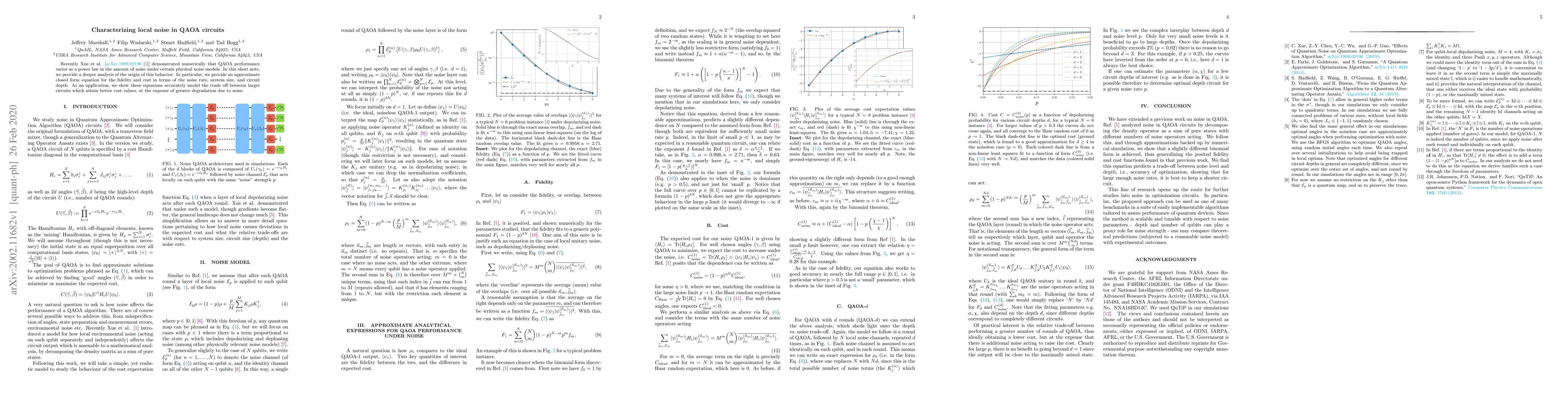 Recently Xue et al. [arXiv:1909.02196] demonstrated numerically that QAOA performance varies as a power law in the amount of noise under certain physical noise models. In this short note, we provide a deeper analysis of the origin of this behavior. In particular, we provide an approximate closed form equation for the fidelity and cost in terms of the noise rate, system size, and circuit depth. As an application, we show these equations accurately model the trade off between larger circuits which attain better cost values, at the expense of greater degradation due to noise.