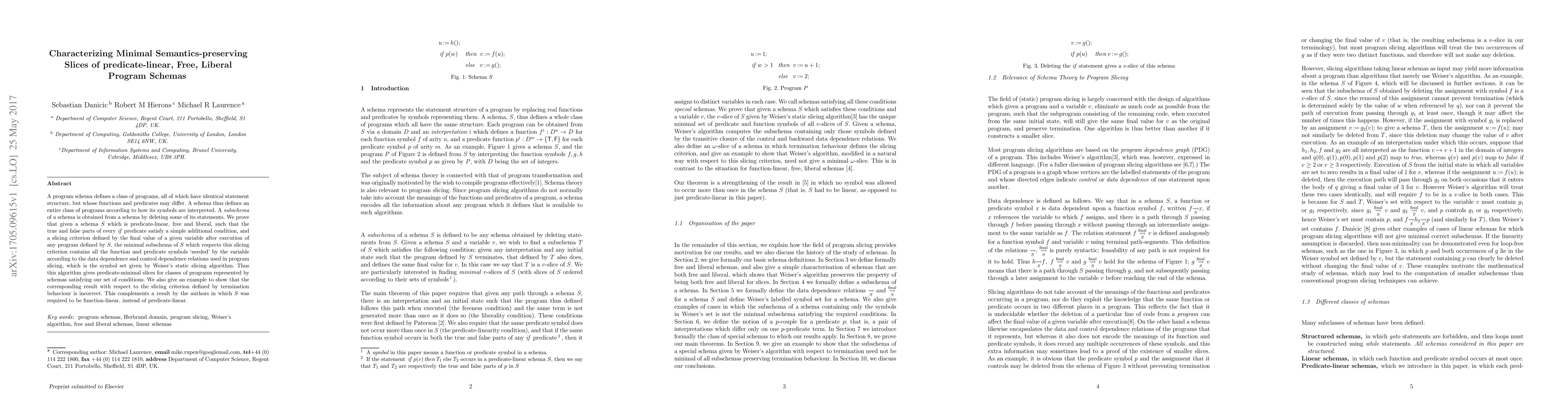 Researchers prove that a specific algorithm for program slicing can accurately determine minimal semantics-preserving slices of predicate-linear, free, liberal program schemas, which is a significant improvement over previous results.