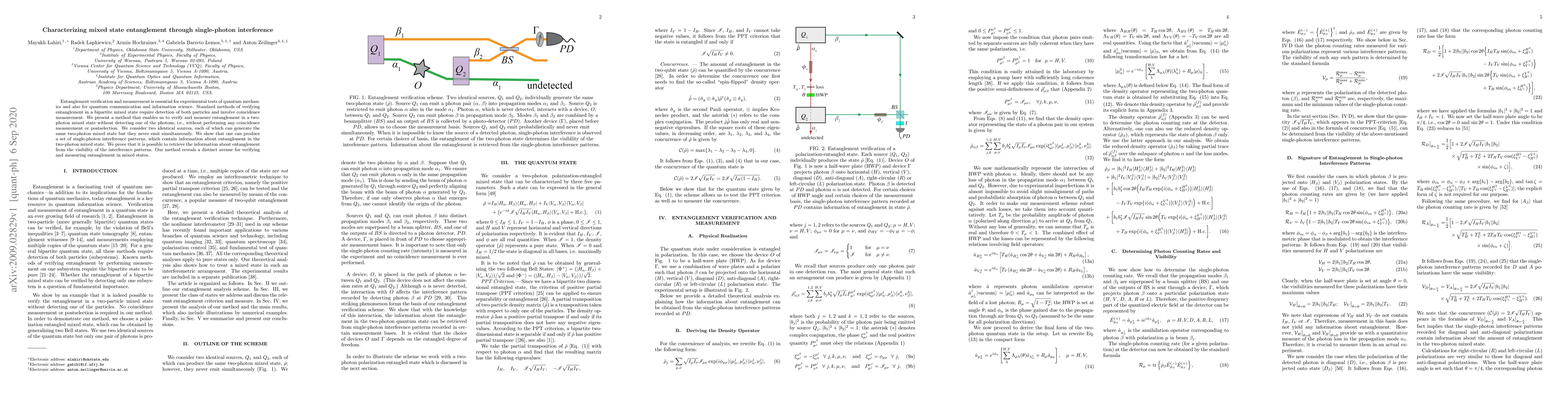 This paper proposes a novel method to verify and measure entanglement in a two-photon mixed state using single-photon interference patterns without requiring coincidence measurements. The method leverages two identical sources to generate interference patterns that encode entanglement information, which can be retrieved from the visibility of these patterns.