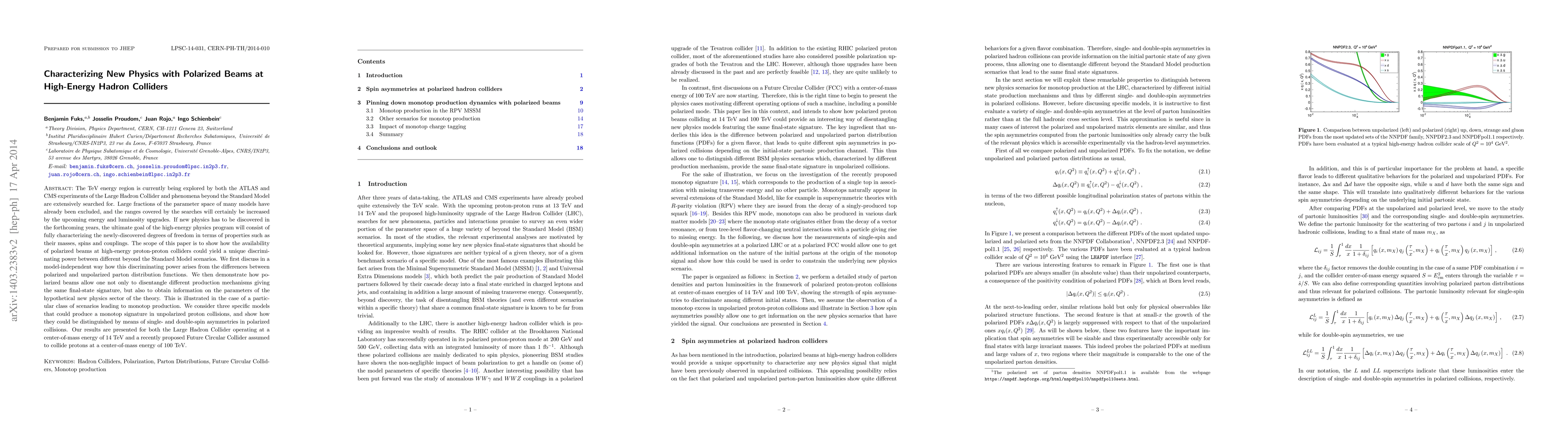 This paper explores how polarized beams at high-energy hadron colliders can uniquely characterize new physics beyond the Standard Model by providing discriminating power through differences in polarized and unpolarized parton distribution functions. It demonstrates this capability using specific models that produce monotop signatures, showing how single- and double-spin asymmetries can distinguish between them.