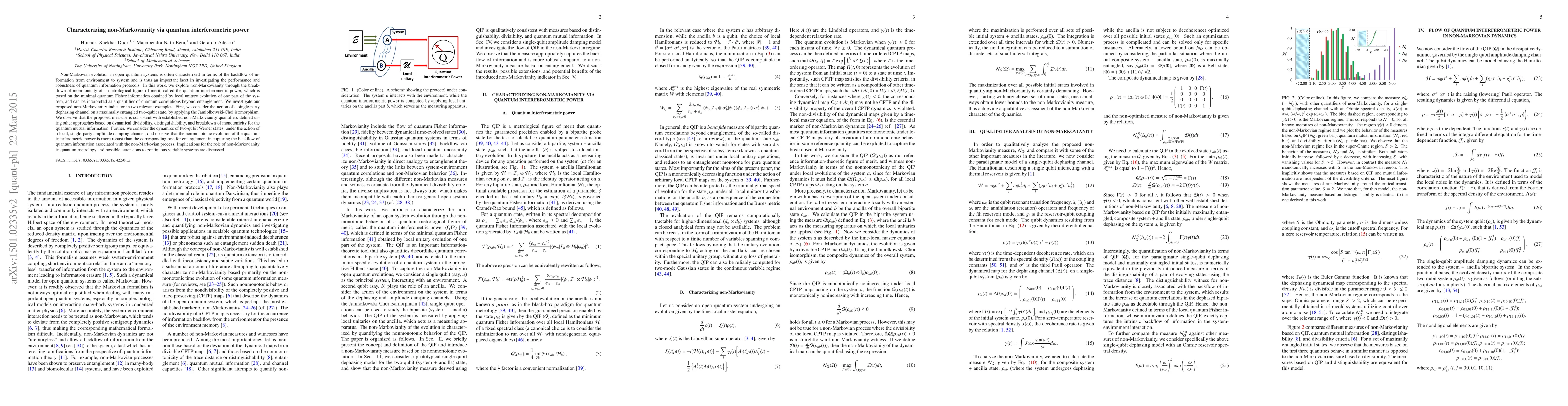 This paper proposes a new measure, the quantum interferometric power, to characterize non-Markovianity in open quantum systems, demonstrating its consistency with established measures through examples involving dephasing and amplitude damping channels. The study shows that this measure captures non-Markovian dynamics more robustly than entanglement, highlighting its potential for quantum metrology.