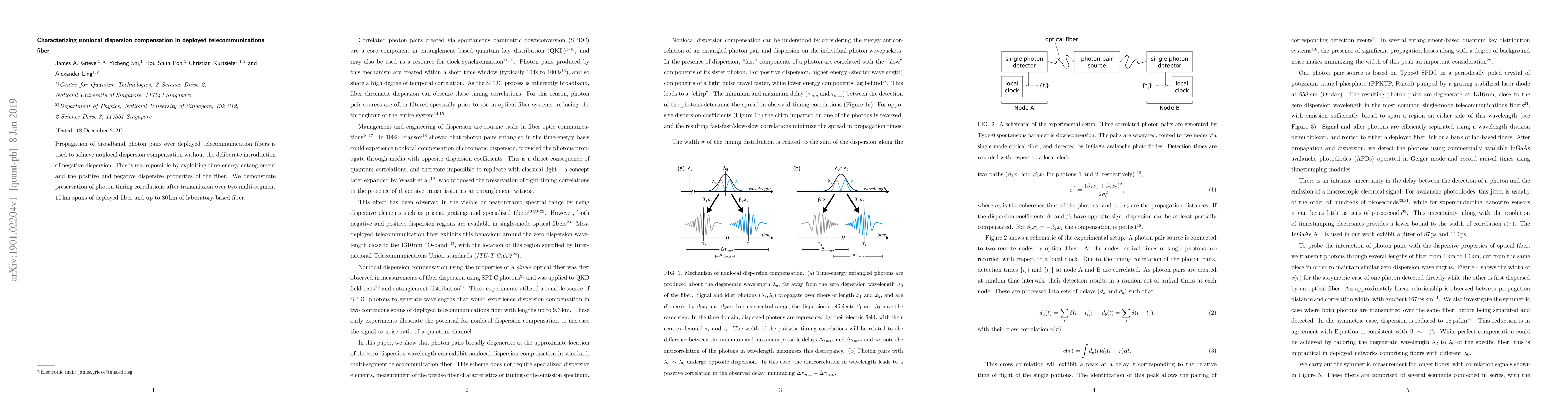 This paper demonstrates nonlocal dispersion compensation in telecommunications fiber using time-energy entangled photon pairs, preserving timing correlations over both deployed and laboratory fibers. The method leverages the fiber's inherent dispersive properties without introducing negative dispersion.