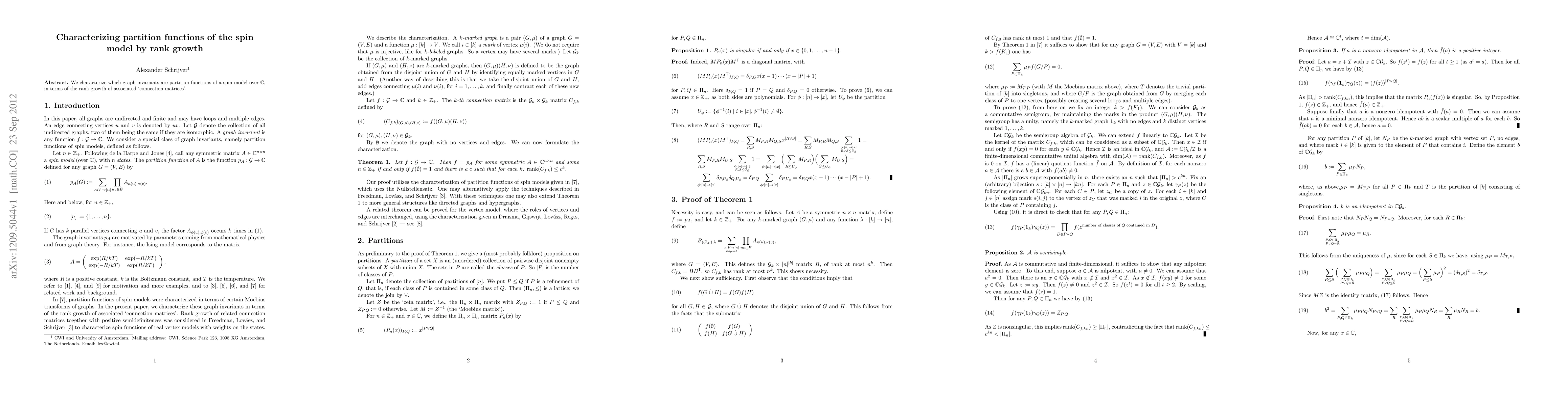 Researchers characterized which graph invariants can be partition functions of spin models based on connection matrix rank growth, shedding light on the properties of these complex systems.
