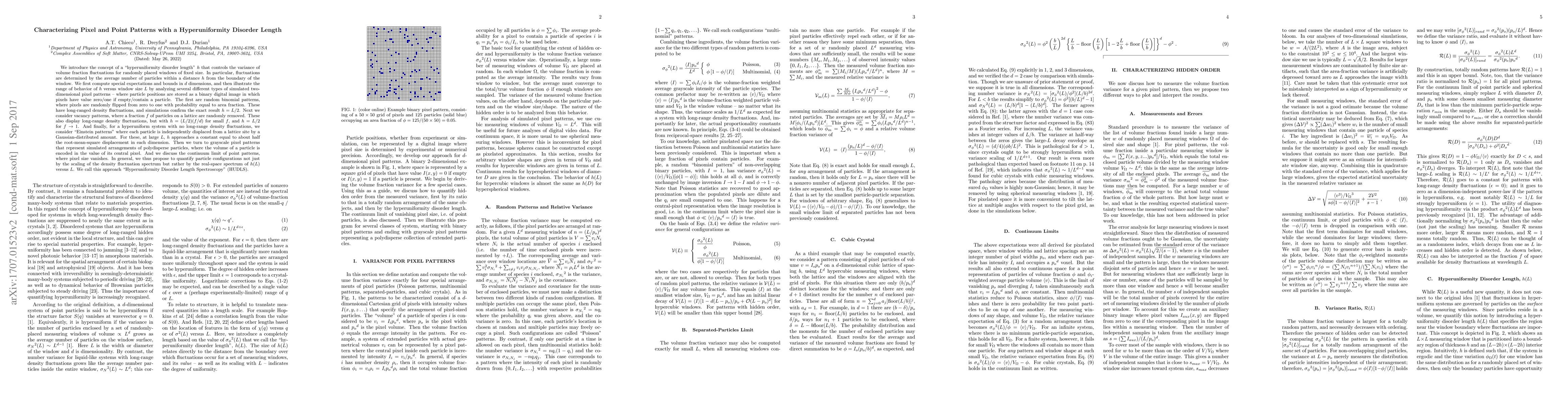 This paper introduces the concept of hyperuniformity disorder length to quantify variance in volume fraction fluctuations in pixel and point patterns. It analyzes various simulated two-dimensional pixel patterns, including random binomial, vacancy, and Einstein patterns, and proposes Hyperuniformity Disorder Length Spectroscopy as a method to characterize particle configurations.