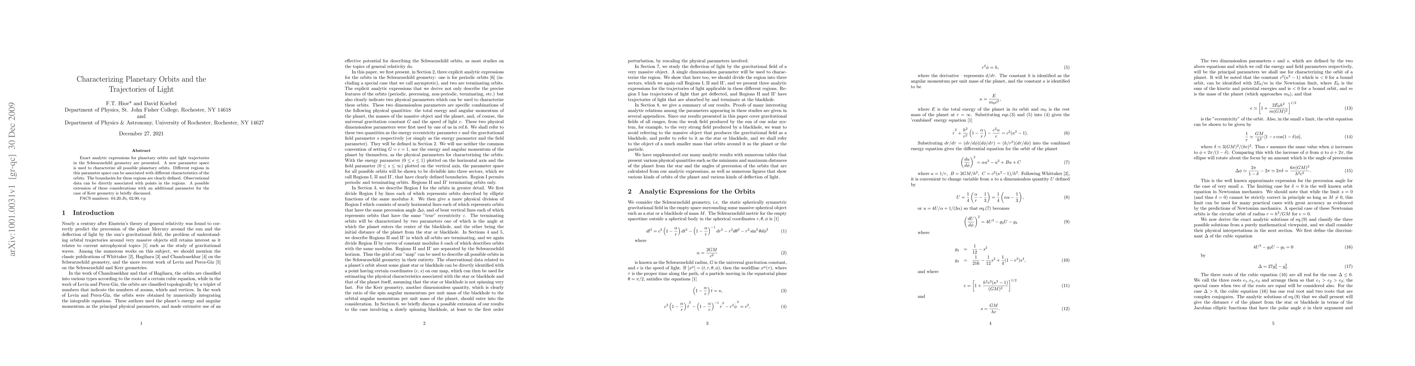 Exact analytic expressions for planetary orbits and light trajectories in the Schwarzschild geometry are presented. A new parameter space is used to characterize all possible planetary orbits. Different regions in this parameter space can be associated with different characteristics of the orbits. The boundaries for these regions are clearly defined. Observational data can be directly associated with points in the regions. A possible extension of these considerations with an additional parameter for the case of Kerr geometry is briefly discussed.