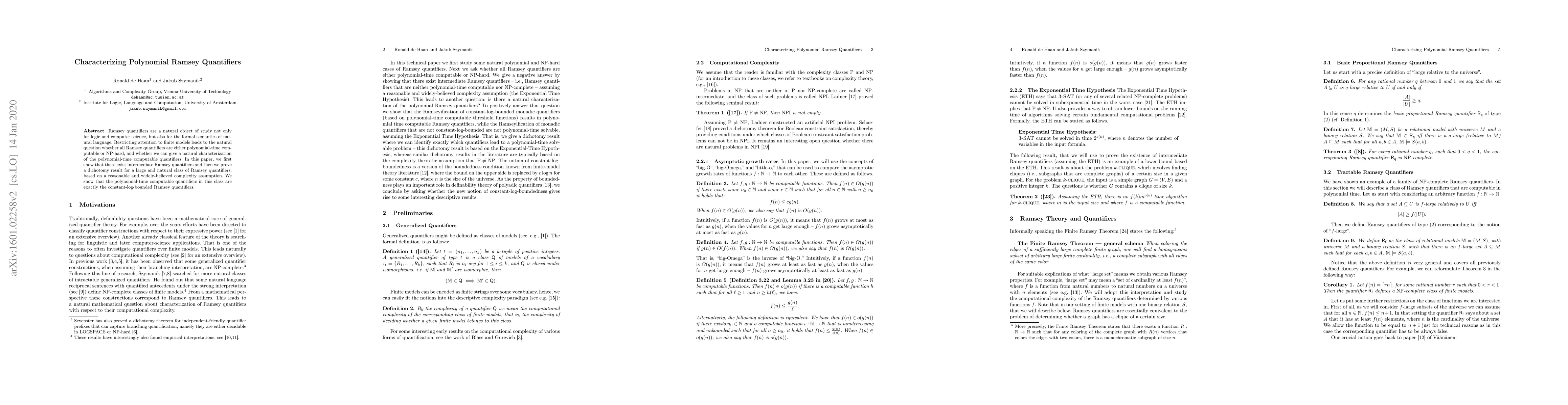 This paper investigates Ramsey quantifiers, revealing that some are intermediate in complexity and proving a dichotomy for a significant class of these quantifiers. It concludes that polynomial-time computable quantifiers within this class are precisely those bounded by a constant logarithm.