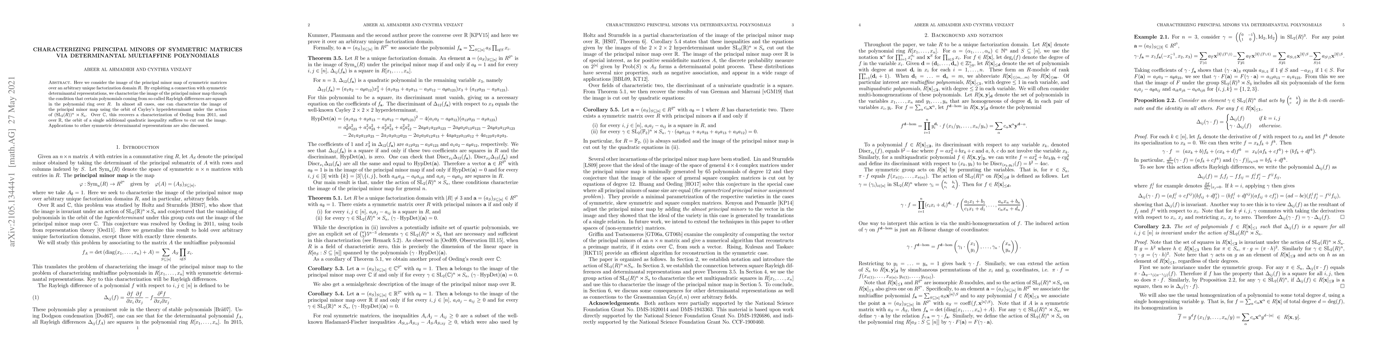 This paper characterizes the image of the principal minor map for symmetric matrices over unique factorization domains using determinantal multiaffine polynomials and Rayleigh differences. It shows that the image can be determined by the squaring condition of specific polynomials and the action of a group on Cayley's hyperdeterminant, with applications to other symmetric determinantal representations.