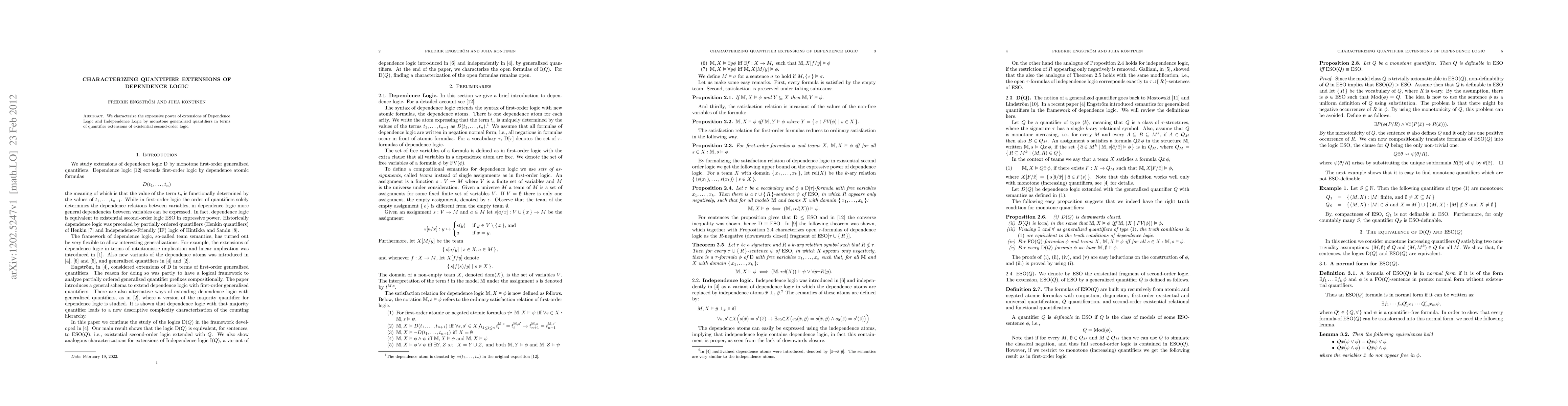 This paper characterizes the expressive power of extensions of Dependence Logic and Independence Logic using monotone generalized quantifiers, relating them to quantifier extensions of existential second-order logic. The study provides a framework for understanding how these extensions enhance logical expressiveness.