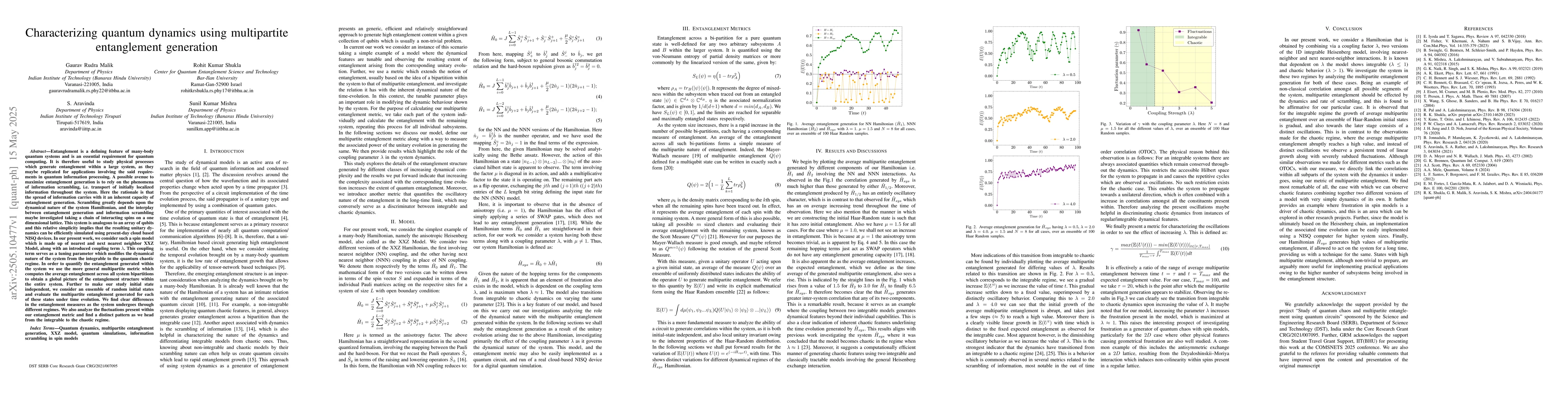 The paper presents a method to characterize quantum dynamics by analyzing multipartite entanglement generation in a tunable spin chain model, bridging the gap between information scrambling and entanglement production.