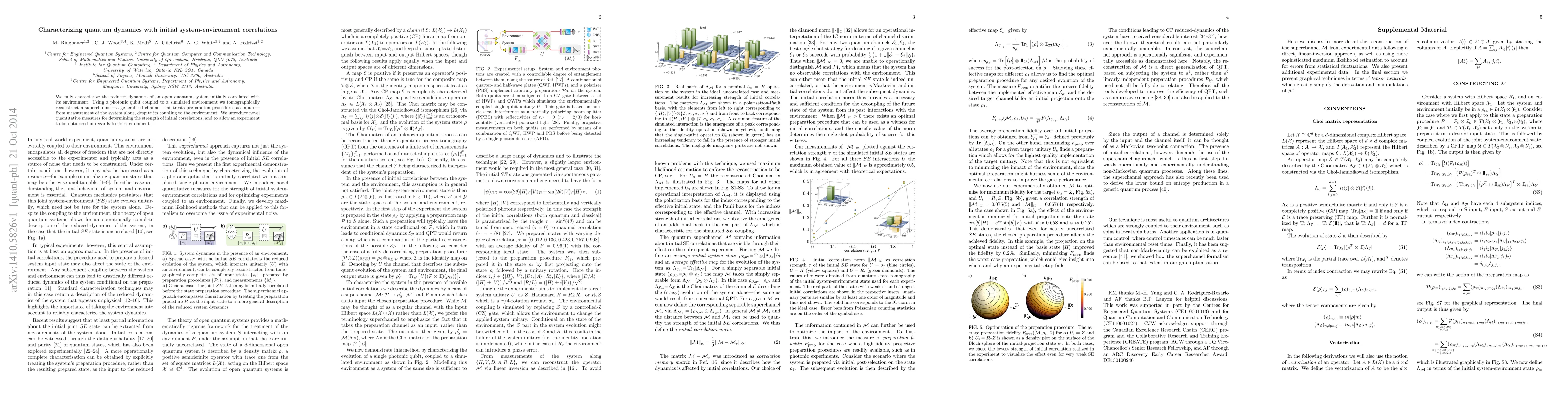 This paper characterizes the reduced dynamics of an open quantum system initially correlated with its environment using a photonic qubit and a simulated environment. It introduces novel measures to quantify initial correlations and optimize experiments based on these correlations.