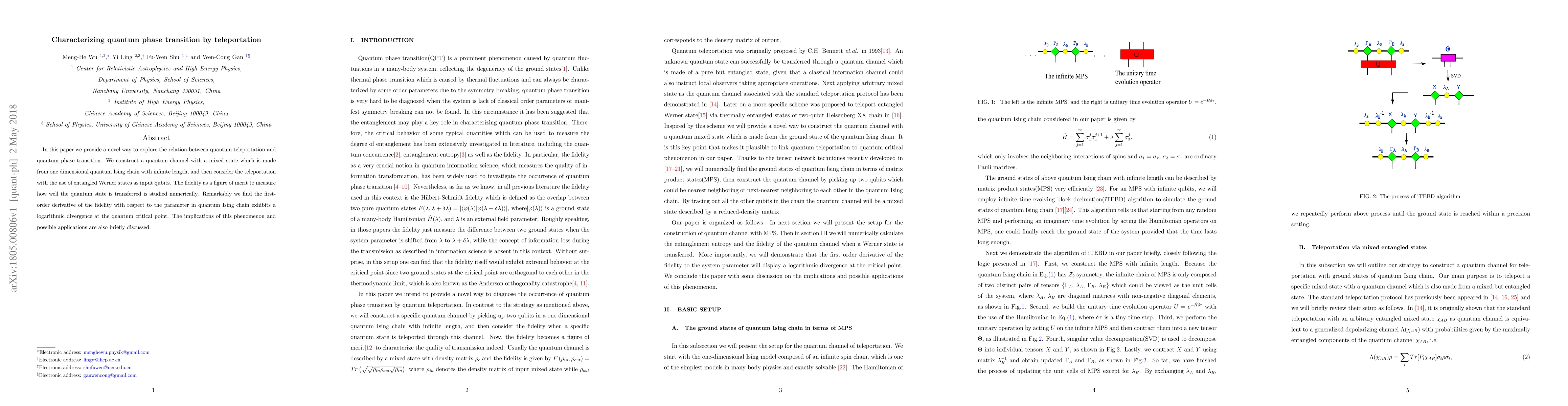 This paper explores the connection between quantum teleportation and quantum phase transitions by analyzing fidelity in a quantum channel derived from an infinite one-dimensional Ising chain. It finds that the first-order derivative of fidelity shows a logarithmic divergence at the quantum critical point, indicating a novel method to characterize quantum phase transitions.