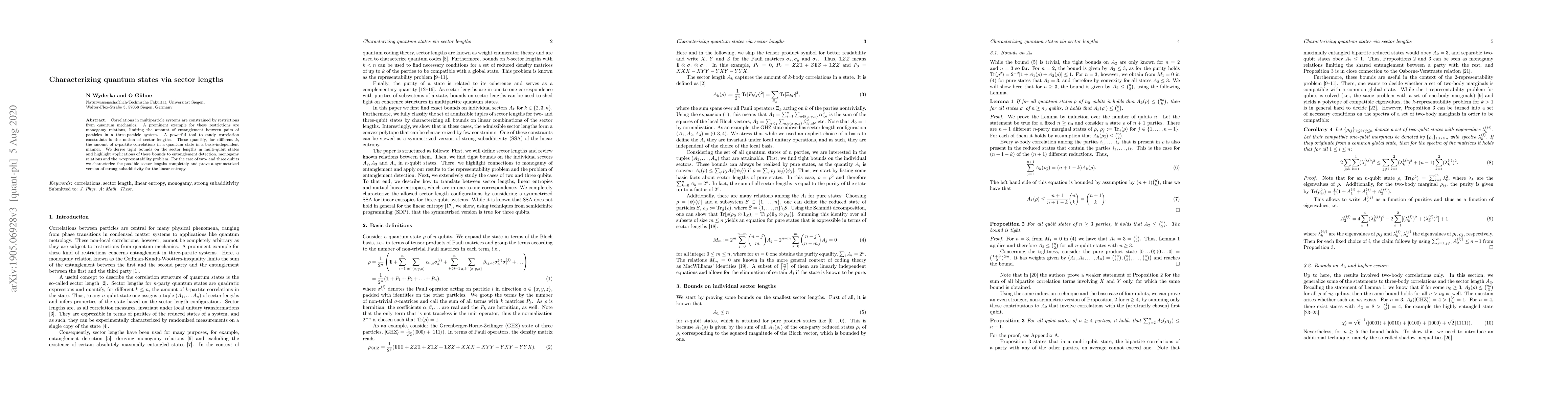 Correlations in multiparticle systems are constrained by restrictions from quantum mechanics. A prominent example for these restrictions are monogamy relations, limiting the amount of entanglement between pairs of particles in a three-particle system. A powerful tool to study correlation constraints is the notion of sector lengths. These quantify, for different $k$, the amount of $k$-partite correlations in a quantum state in a basis-independent manner. We derive tight bounds on the sector lengths in multi-qubit states and highlight applications of these bounds to entanglement detection, monogamy relations and the $n$-representability problem. For the case of two- and three qubits we characterize the possible sector lengths completely and prove a symmetrized version of strong subadditivity for the linear entropy.