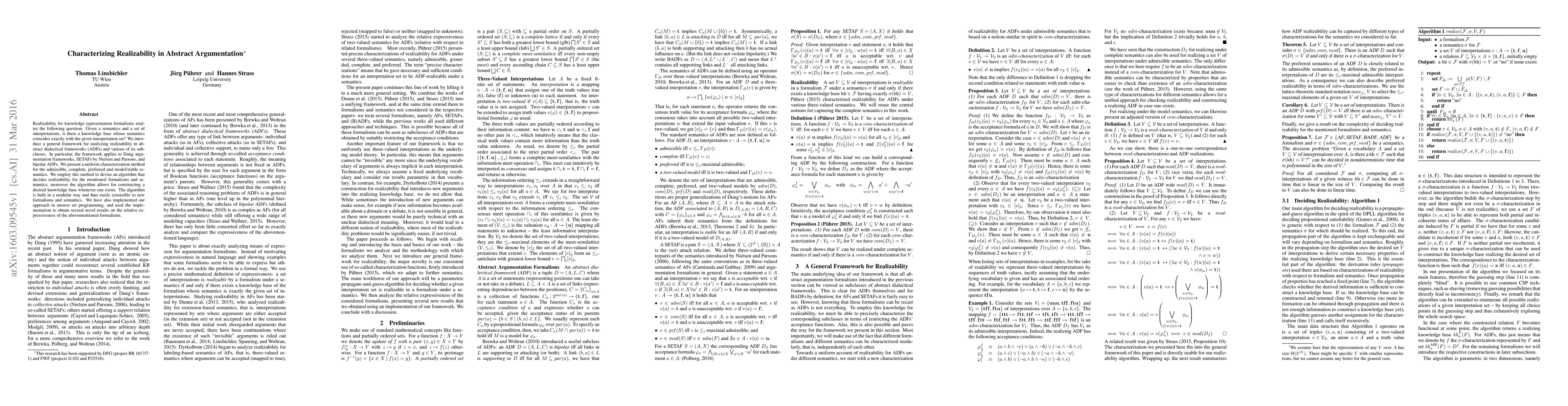 This paper introduces a framework for analyzing realizability in abstract dialectical frameworks (ADFs) and its subclasses, including Dung argumentation frameworks and bipolar ADFs. It presents a uniform characterization method and an algorithm to decide realizability, which is modular and extensible to new formalisms.