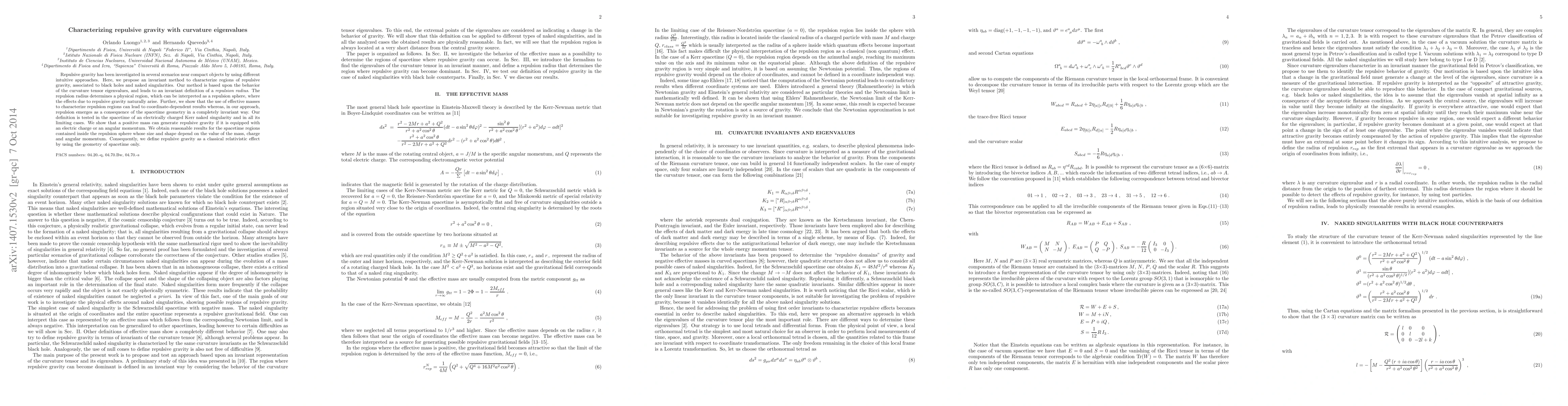 This research proposes an invariant method to characterize repulsive gravity regions near black holes and naked singularities using curvature tensor eigenvalues. The method defines a 'repulsion radius,' demonstrating that positive mass with electric charge or angular momentum can generate repulsive gravity. The findings suggest repulsive gravity as a classical relativistic effect based on spacetime geometry.