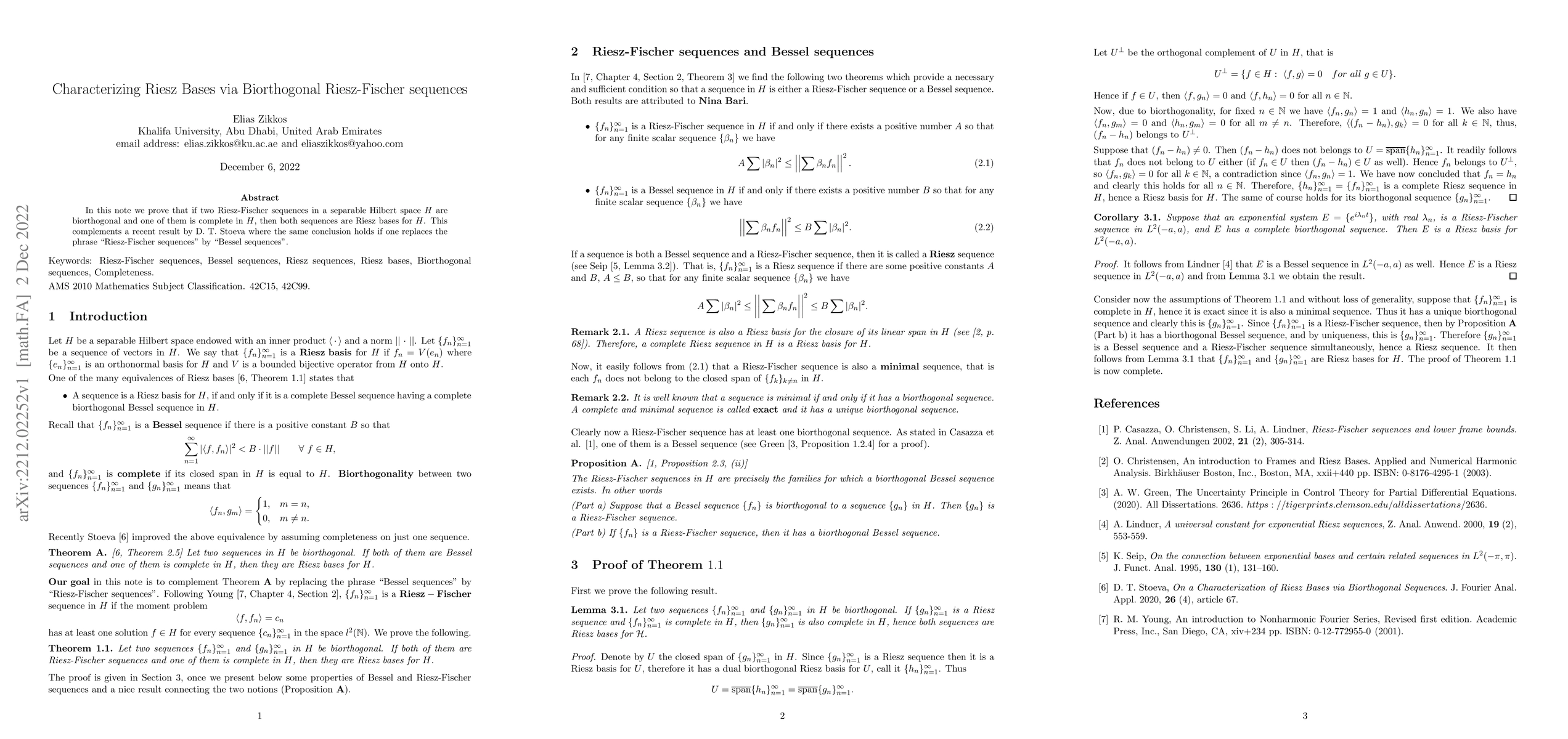 This paper proves that if two biorthogonal Riesz-Fischer sequences in a separable Hilbert space are complete, both qualify as Riesz bases for the space. This extends a prior result by D. T. Stoeva, which applies the same conclusion for Bessel sequences instead.