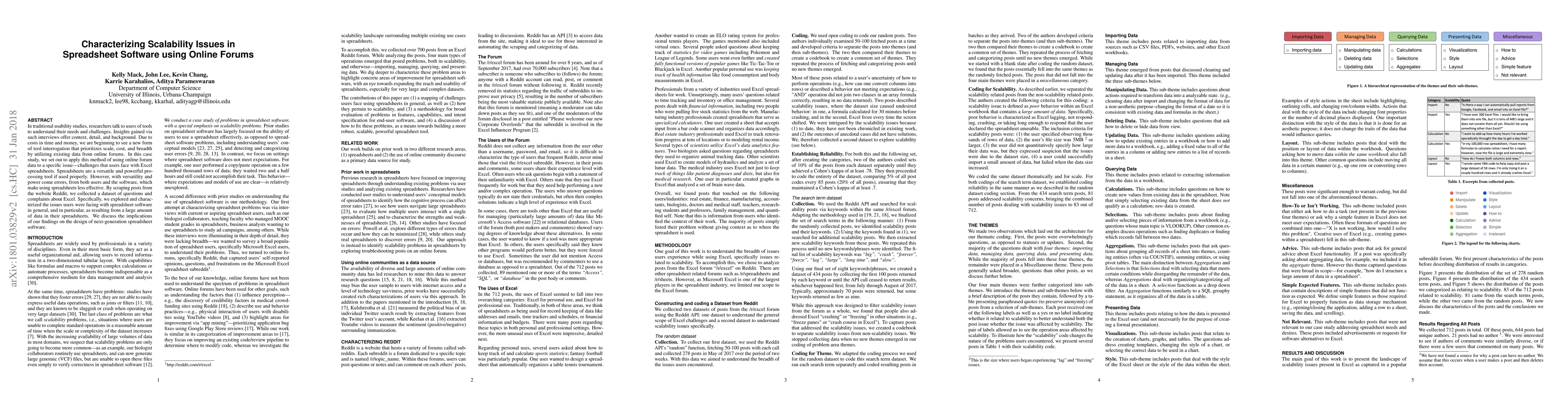 In traditional usability studies, researchers talk to users of tools to understand their needs and challenges. Insights gained via such interviews offer context, detail, and background. Due to costs in time and money, we are beginning to see a new form of tool interrogation that prioritizes scale, cost, and breadth by utilizing existing data from online forums. In this case study, we set out to apply this method of using online forum data to a specific issue---challenges that users face with Excel spreadsheets. Spreadsheets are a versatile and powerful processing tool if used properly. However, with versatility and power come errors, from both users and the software, which make using spreadsheets less effective. By scraping posts from the website Reddit, we collected a dataset of questions and complaints about Excel. Specifically, we explored and characterized the issues users were facing with spreadsheet software in general, and in particular, as resulting from a large amount of data in their spreadsheets. We discuss the implications of our findings on the design of next-generation spreadsheet software.