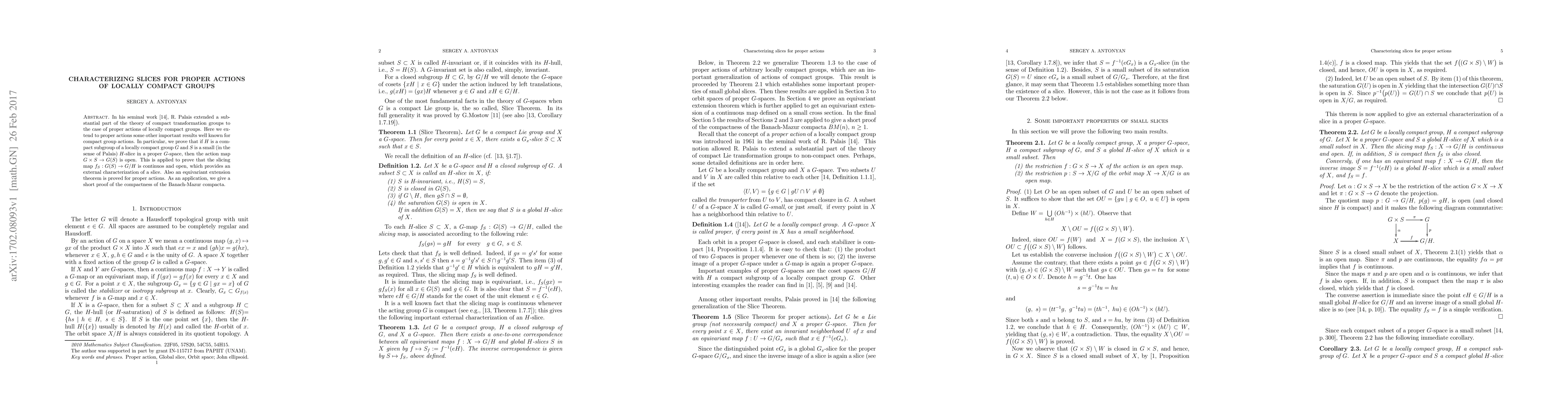 The paper extends known results for compact group actions to proper actions of locally compact groups, focusing on slices and their properties.