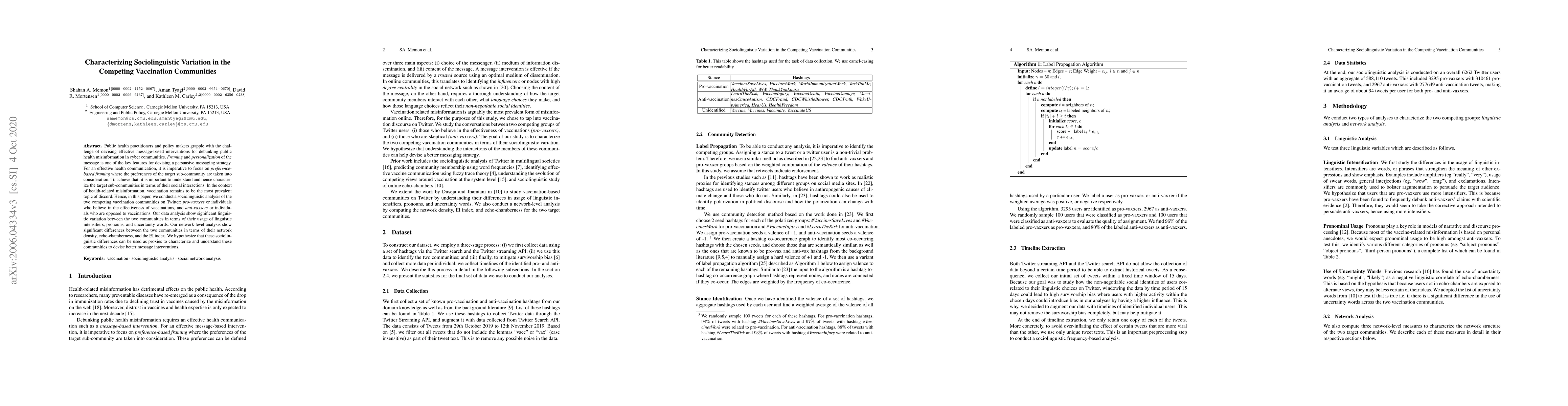 Public health practitioners and policy makers grapple with the challenge of devising effective message-based interventions for debunking public health misinformation in cyber communities. "Framing" and "personalization" of the message is one of the key features for devising a persuasive messaging strategy. For an effective health communication, it is imperative to focus on "preference-based framing" where the preferences of the target sub-community are taken into consideration. To achieve that, it is important to understand and hence characterize the target sub-communities in terms of their social interactions. In the context of health-related misinformation, vaccination remains to be the most prevalent topic of discord. Hence, in this paper, we conduct a sociolinguistic analysis of the two competing vaccination communities on Twitter: "pro-vaxxers" or individuals who believe in the effectiveness of vaccinations, and "anti-vaxxers" or individuals who are opposed to vaccinations. Our data analysis show significant linguistic variation between the two communities in terms of their usage of linguistic intensifiers, pronouns, and uncertainty words. Our network-level analysis show significant differences between the two communities in terms of their network density, echo-chamberness, and the EI index. We hypothesize that these sociolinguistic differences can be used as proxies to characterize and understand these communities to devise better message interventions.