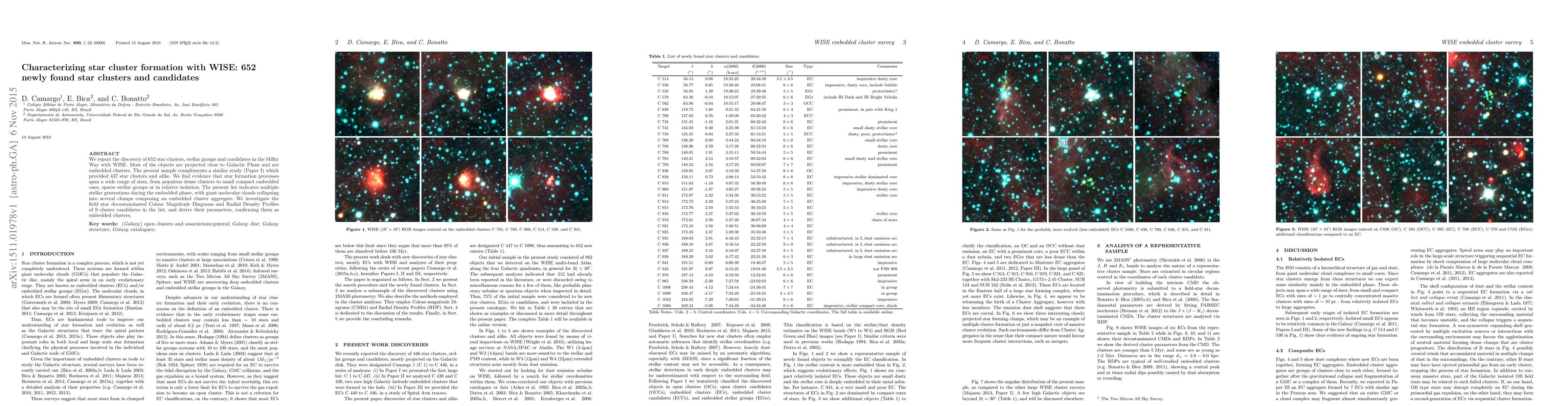 This study, using WISE data, discovers 652 new star clusters and candidates in the Milky Way, mostly near the Galactic Plane. It reveals a range in star formation sizes, from dense clusters to isolated groups, suggesting multiple generations of stars form within a single giant molecular cloud.