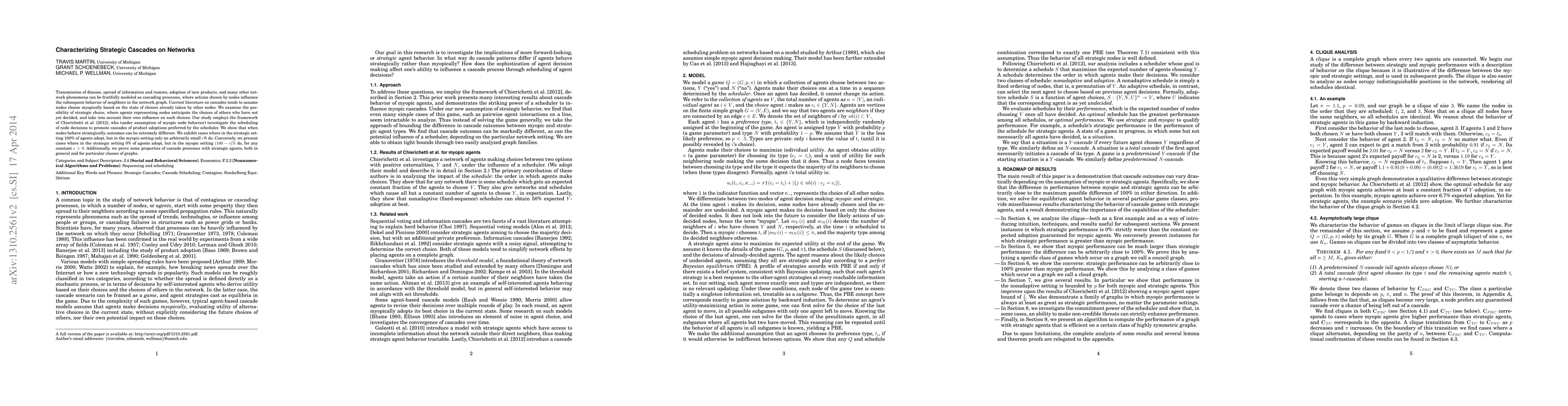 This paper explores how strategic decision-making by nodes in a network can drastically alter the outcomes of cascading processes, such as product adoption, compared to myopic decision-making. It demonstrates significant differences in adoption rates between strategic and myopic settings, and provides proofs for properties of cascades with strategic agents.