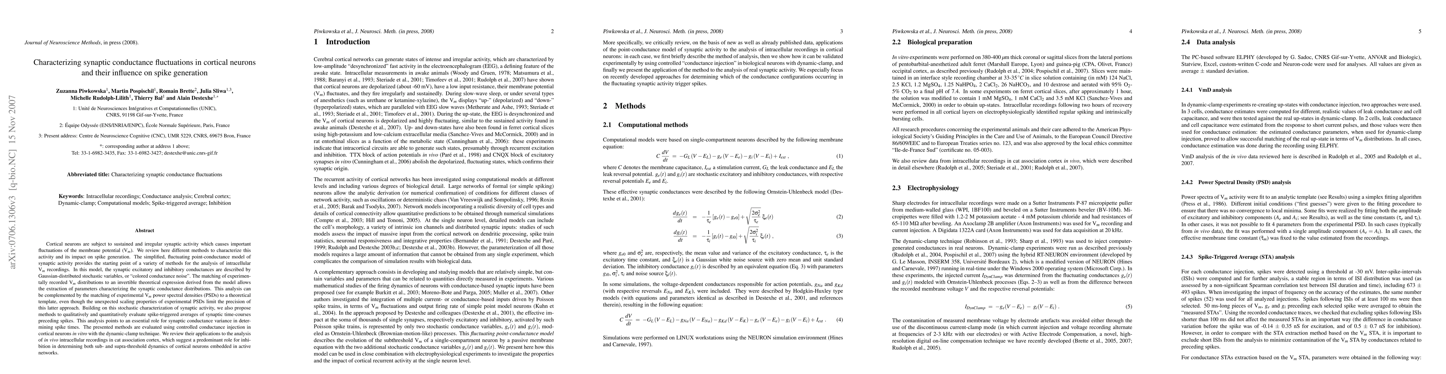 This paper reviews methods to characterize synaptic conductance fluctuations in cortical neurons and their influence on spike generation, using a point-conductance model. It evaluates how these fluctuations affect spike times and highlights the role of inhibition in shaping neuronal dynamics.