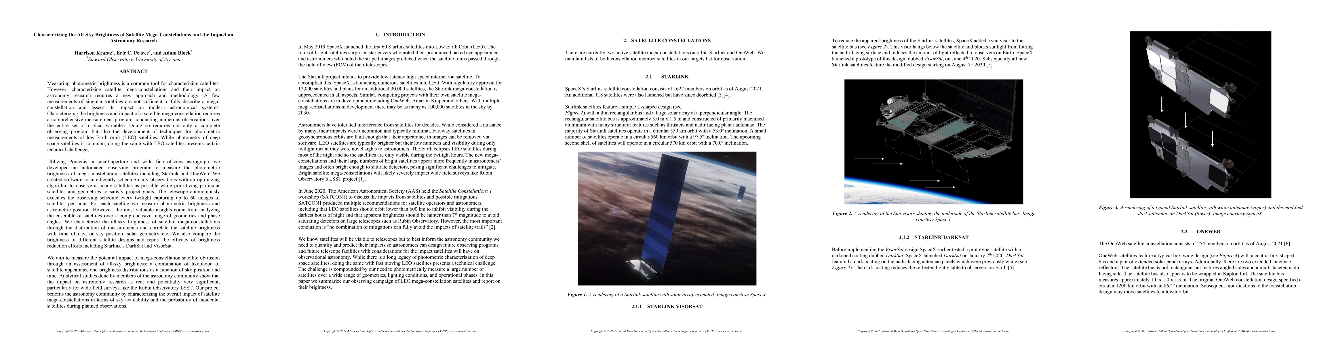 This paper characterizes the all-sky brightness of satellite mega-constellations using an automated observing program with Pomenis astrograph, reporting on 7631 observations. It emphasizes the need for comprehensive measurements to assess the impact on astronomy research beyond single satellite brightness assessments.