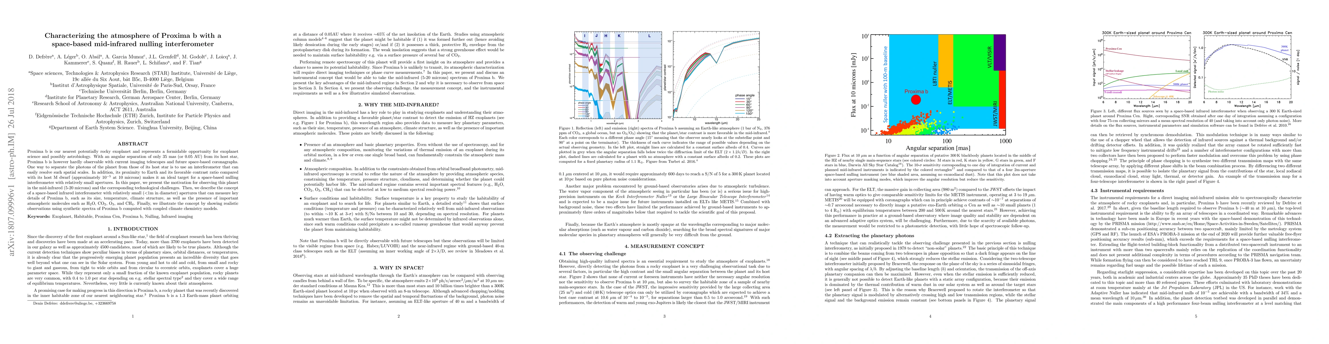 This paper explores the potential of a space-based mid-infrared nulling interferometer to characterize Proxima b, our nearest rocky exoplanet, by resolving its atmosphere and climate details. The study highlights the technological challenges and proposes a small-aperture interferometer capable of detecting key atmospheric molecules, demonstrating the concept with synthetic spectra.