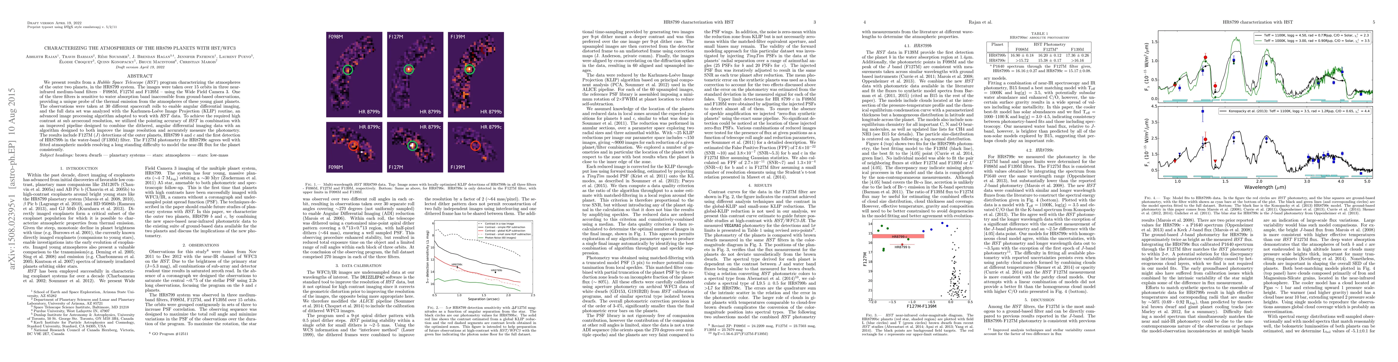 The HST/WFC3 observations of HR8799 planets' atmospheres reveal detections of HR8799 b and c in F127M filter, with the first detection of HR8799 b in water-band (F139M) filter. KLIP algorithm and improved data processing methods achieved high-contrast imaging, providing crucial data for consistent atmospheric modeling.